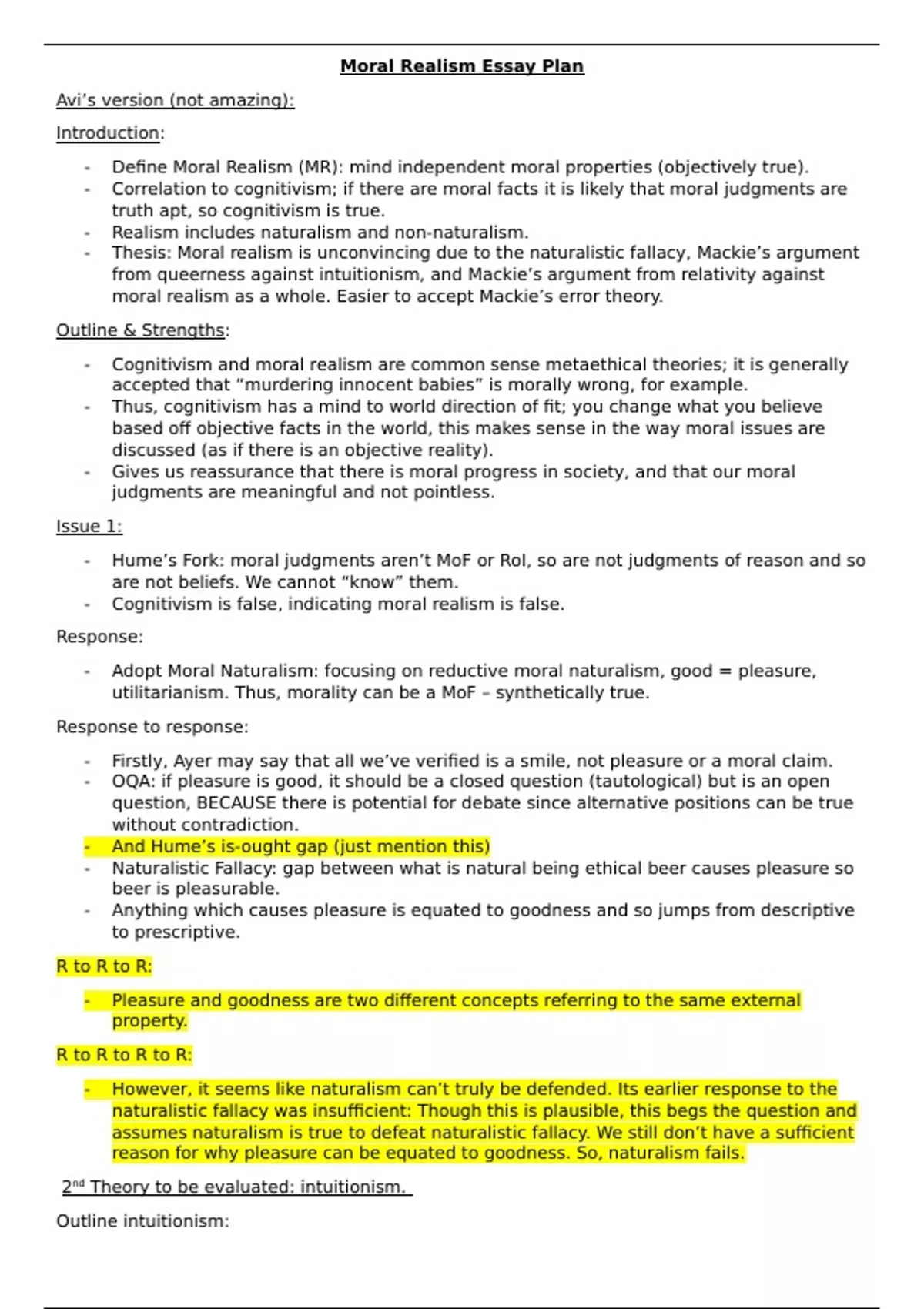 - Thesis: Moral realism is unconvincing due to the naturalistic fallacy, Mackie’s argument