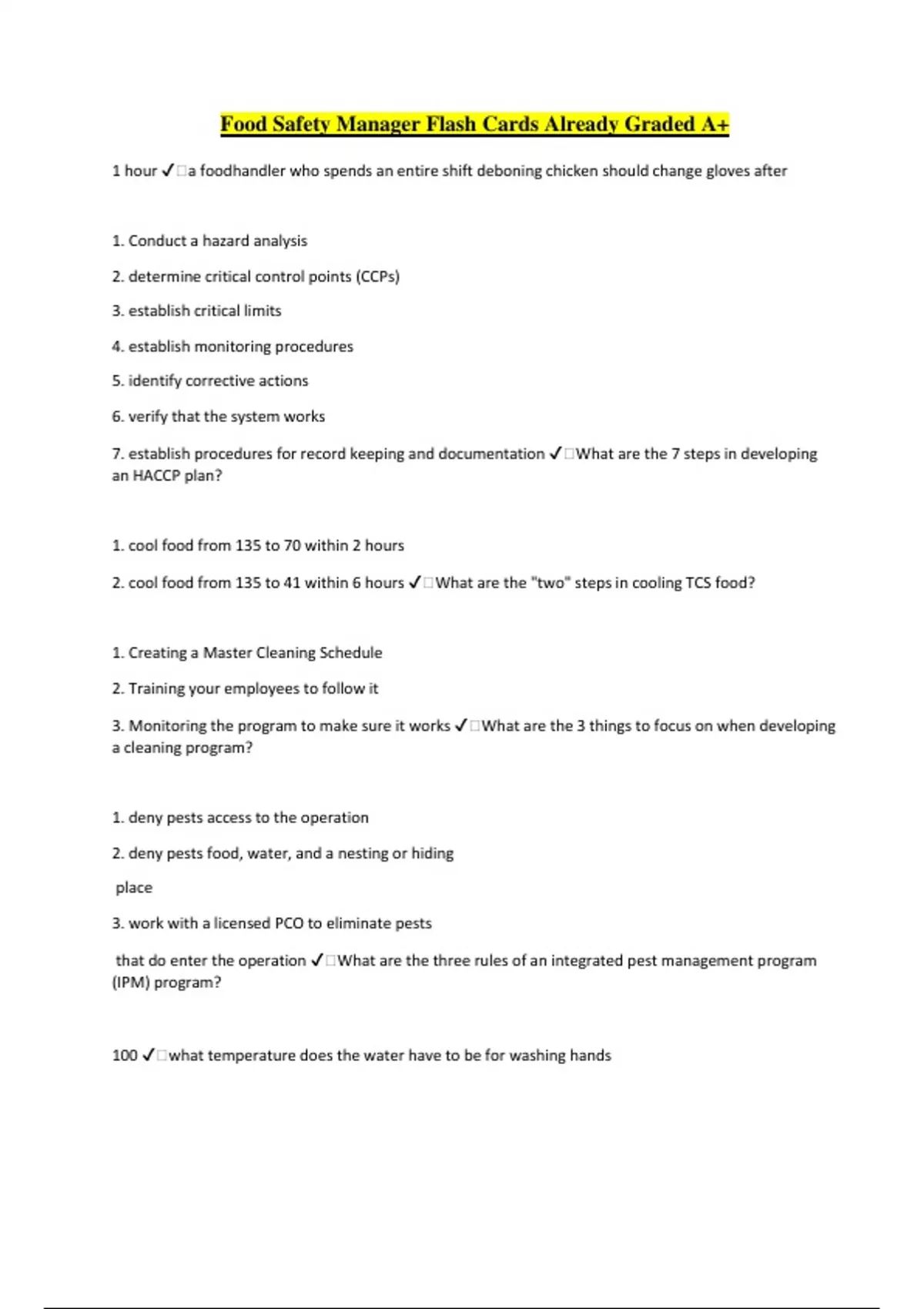 - Food Safety Manager Flash Cards Already Graded A+