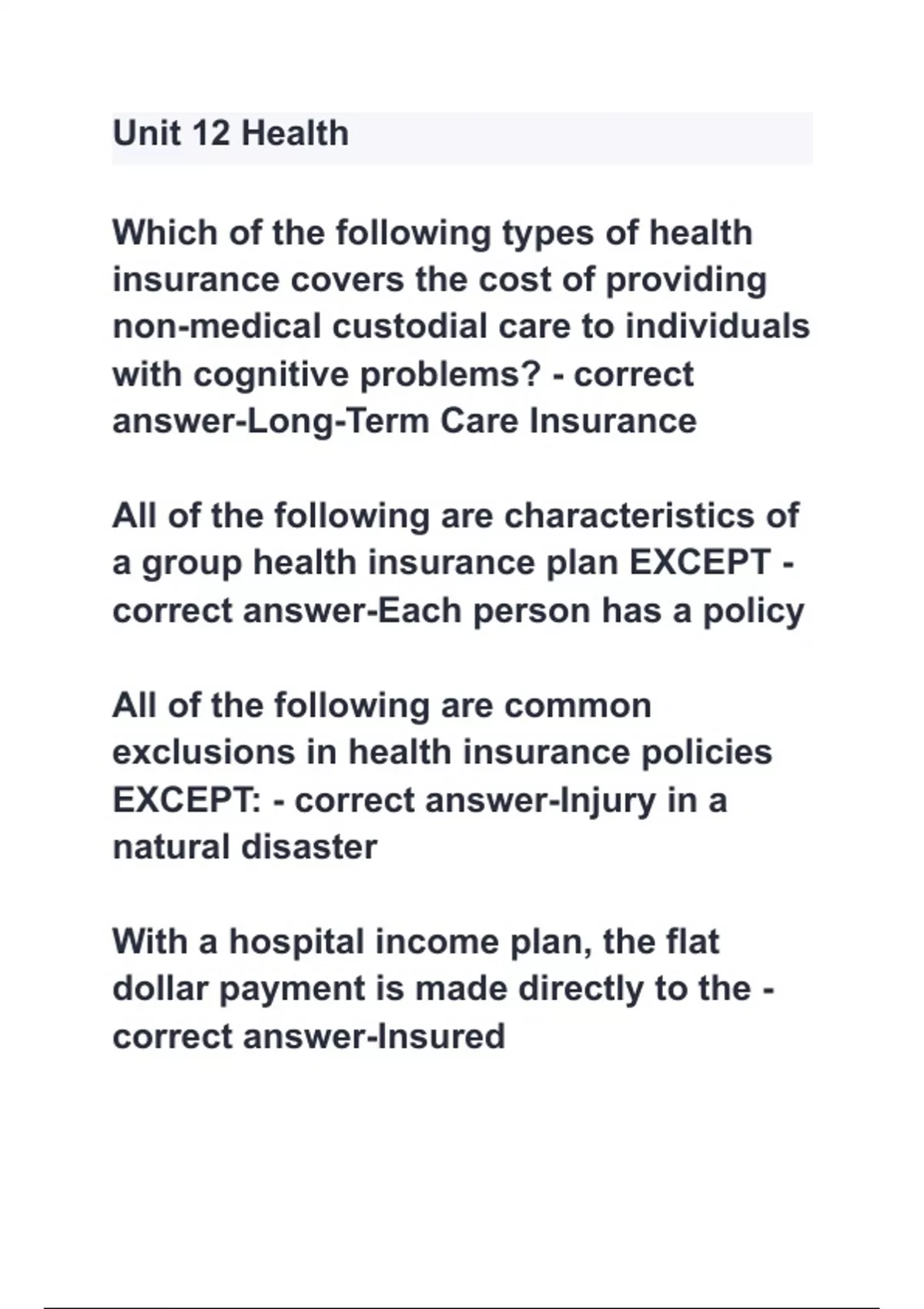a group health insurance plan EXCEPT -