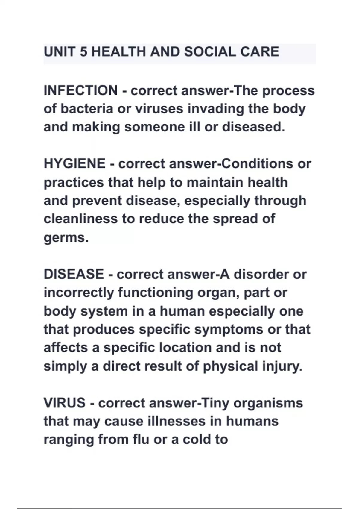 UNIT 5 HEALTH AND SOCIAL CARE Questions with 100% Actual correct answers | verified | latest update | Graded A+ | Already Passed | Complete Solution