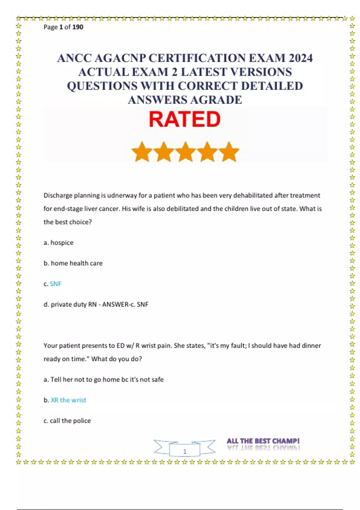 ANCC AGACNP CERTIFICATION EXAM 2024 ACTUAL EXAM 2 LATEST VERSIONS QUESTIONS WITH CORRECT ANSWERS