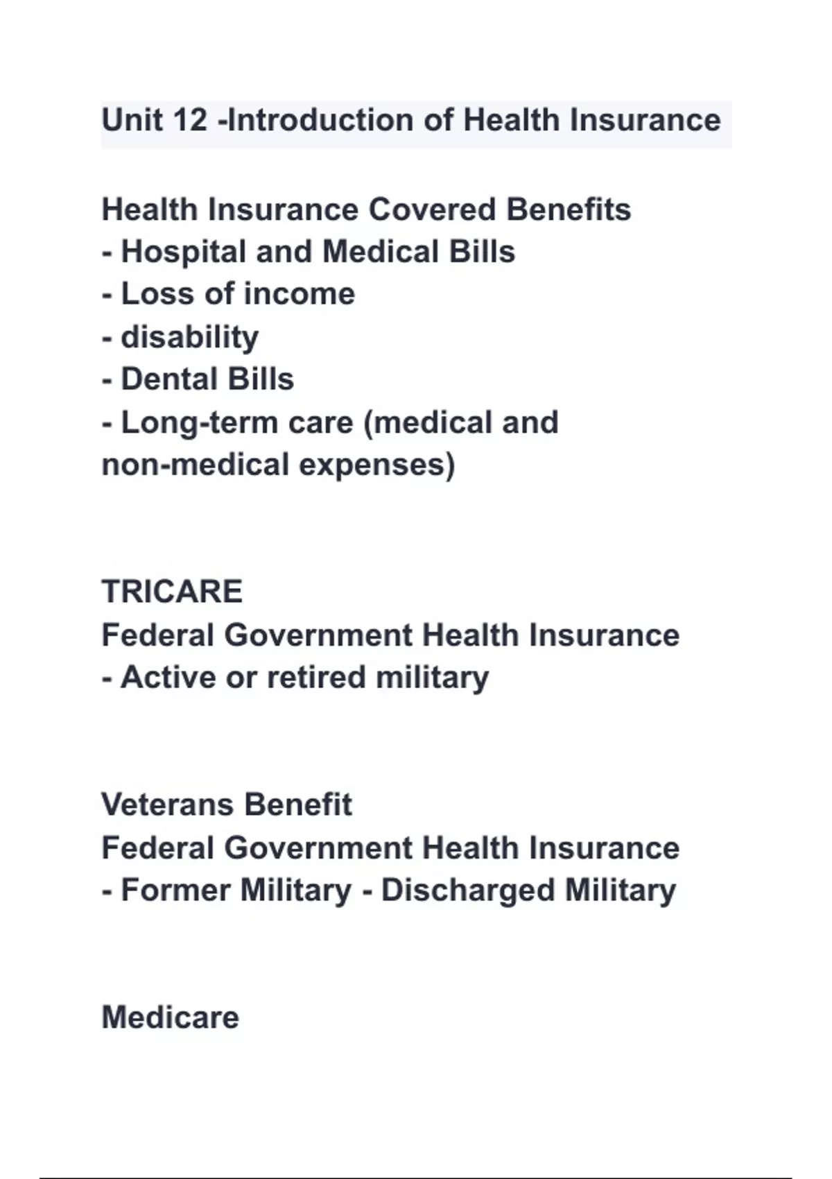 Health Insurance Covered Benefits