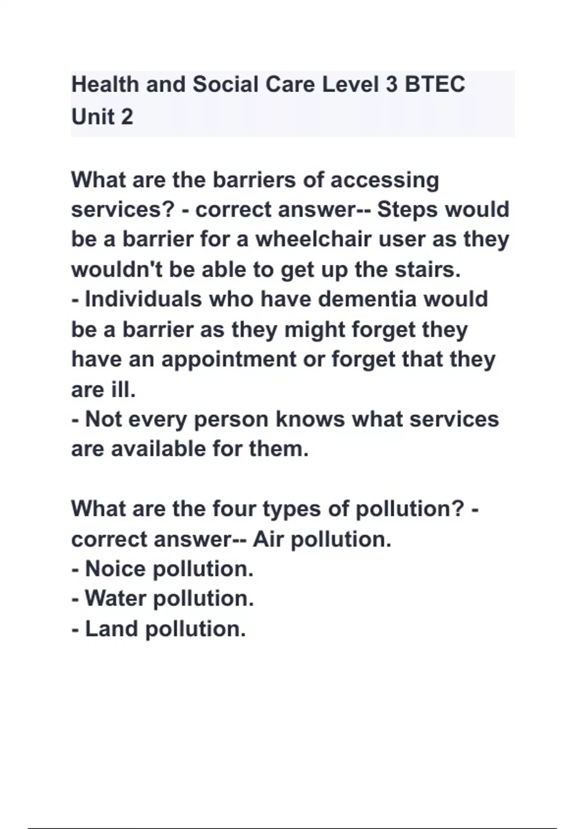Health and Social Care Level 3 BTEC Unit 2 Questions with 100% Actual correct answers | verified | latest update | Graded A+ | Already Passed | Complete Solution