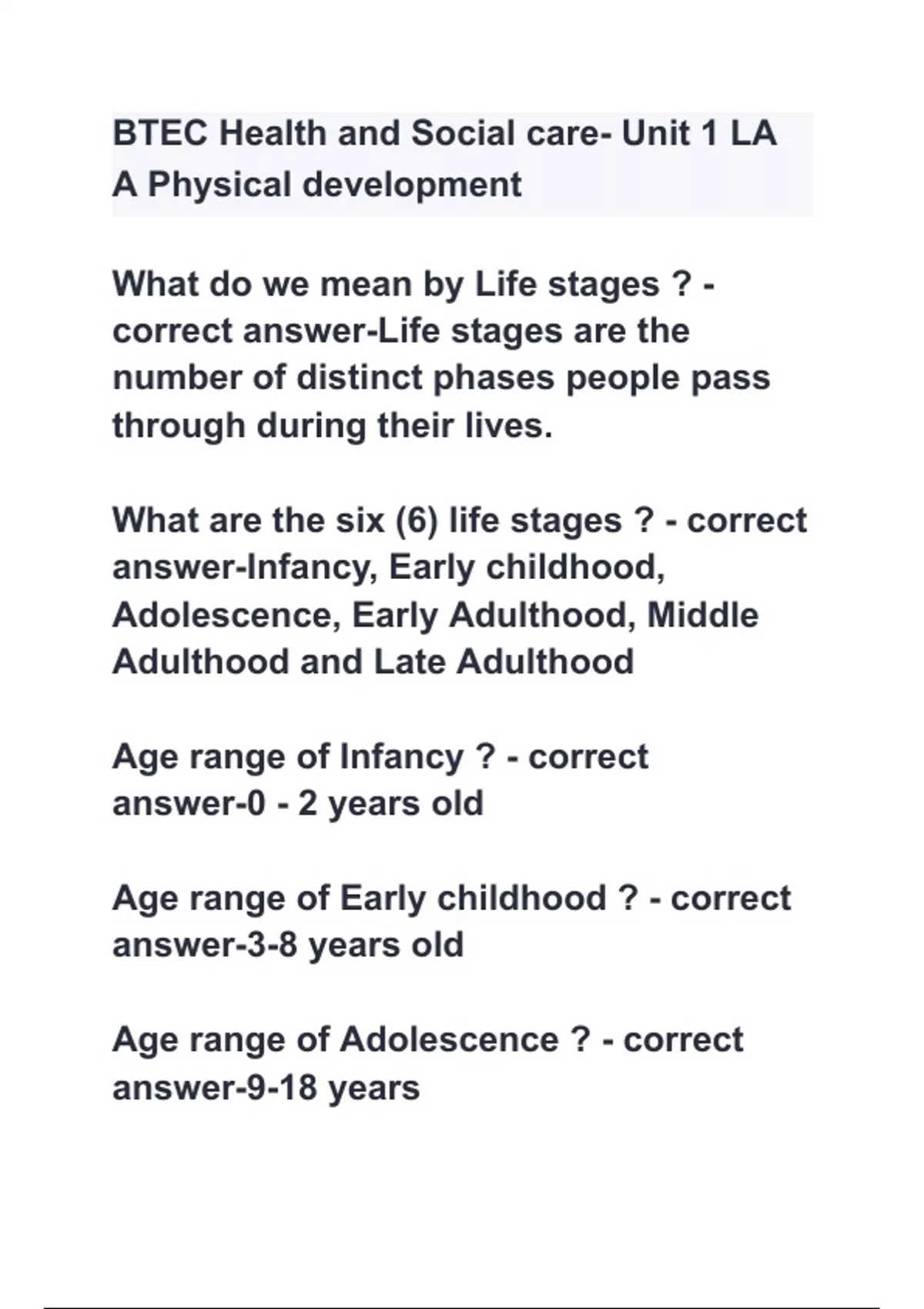 BTEC Health and Social care- Unit 1 LA A Physical development Questions with 100% Actual correct answers | verified | latest update | Graded A+ | Already Passed | Complete Solution