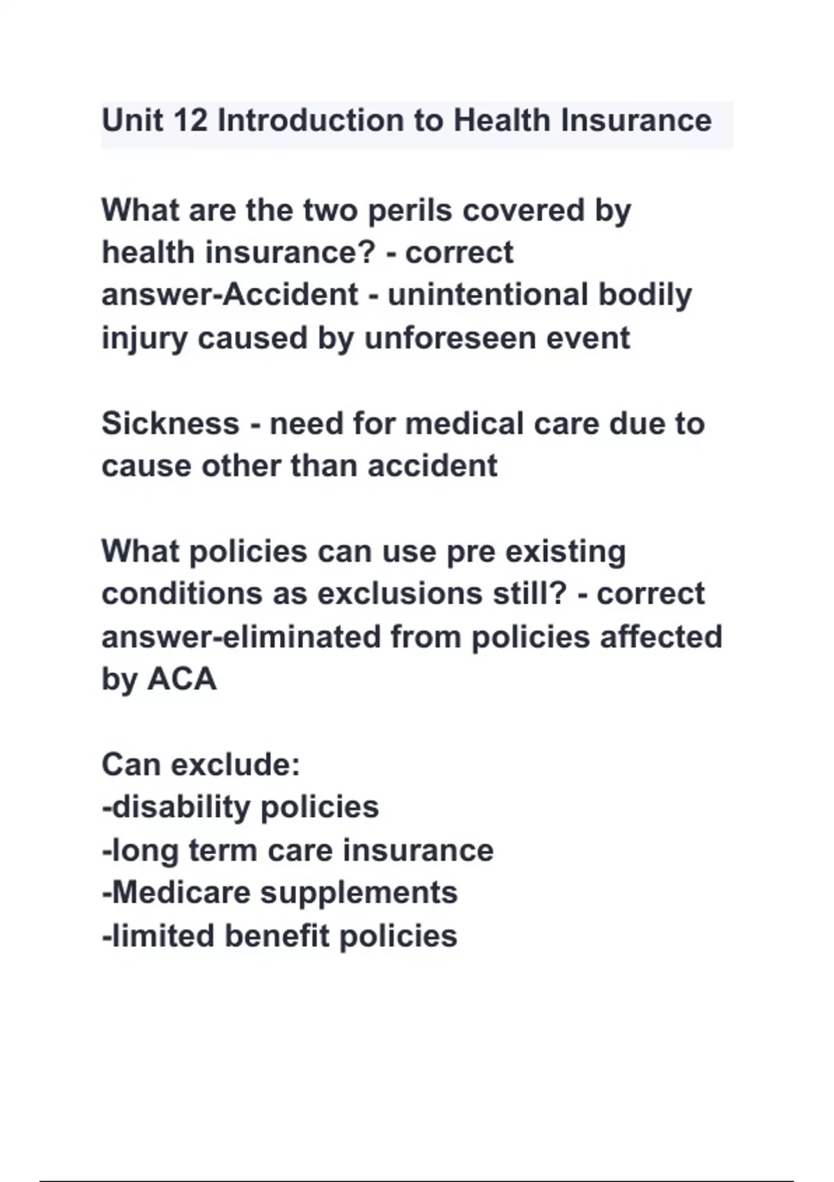 Unit 12 Introduction to Health Insurance Questions with 100% Actual correct answers | verified | latest update | Graded A+ | Already Passed | Complete Solution