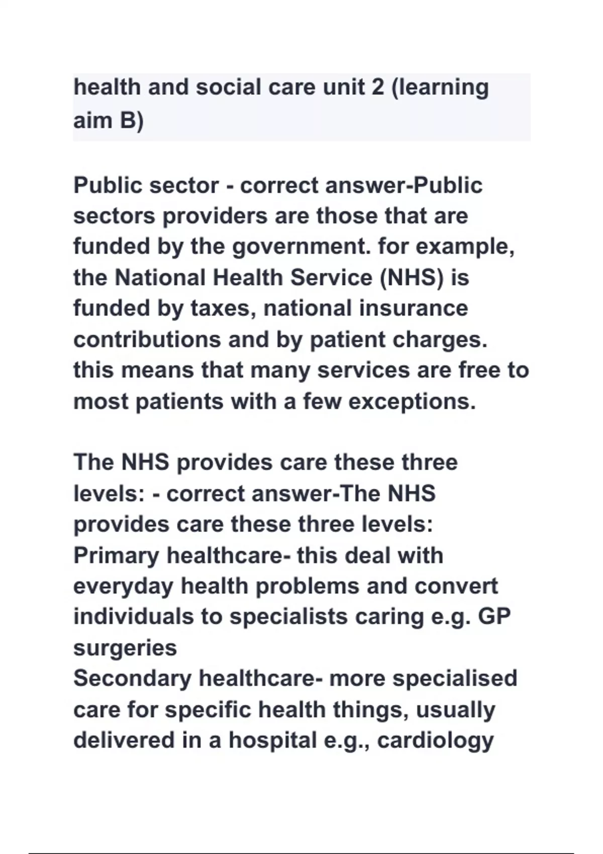 levels: - correct answer-The NHS