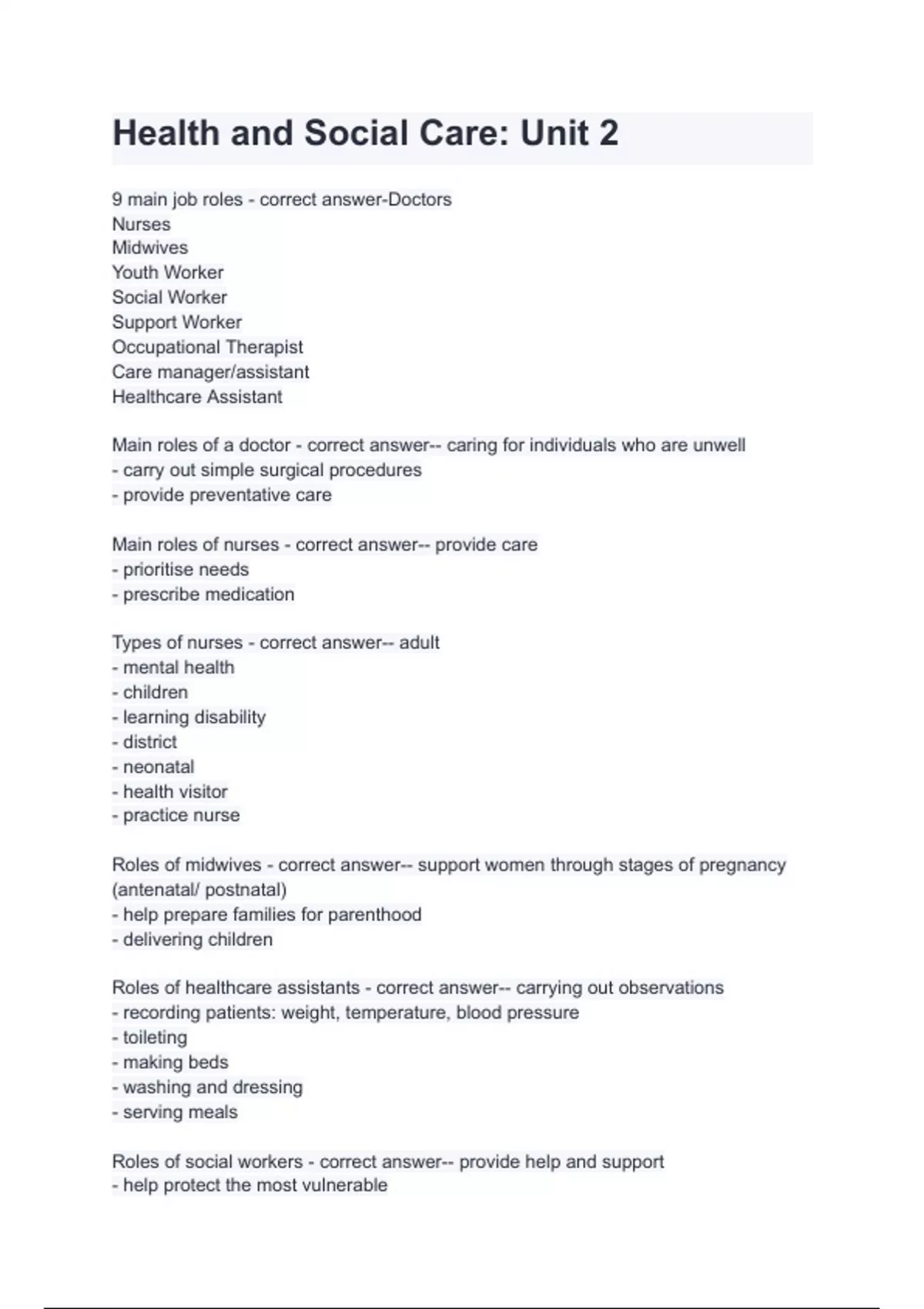 Health and Social Care Unit 2 Questions with 100% Actual correct answers | verified | latest update | Graded A+ | Already Passed | Complete Solution
