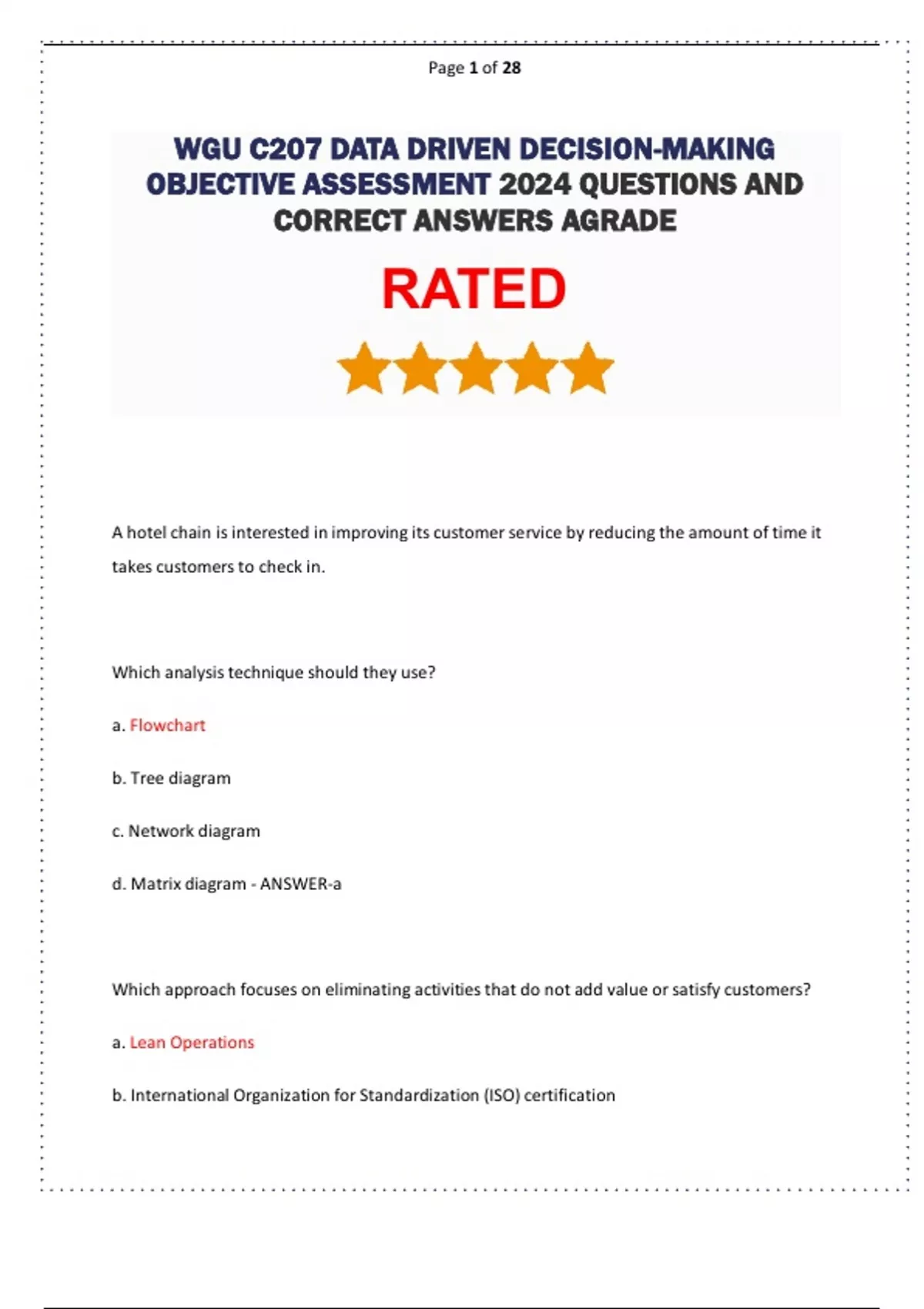 WGU C207 DATA DRIVEN DECISION-MAKING OBJECTIVE ASSESSMENT 2024 QUESTIONS AND CORRECT ANSWERS AGRADE