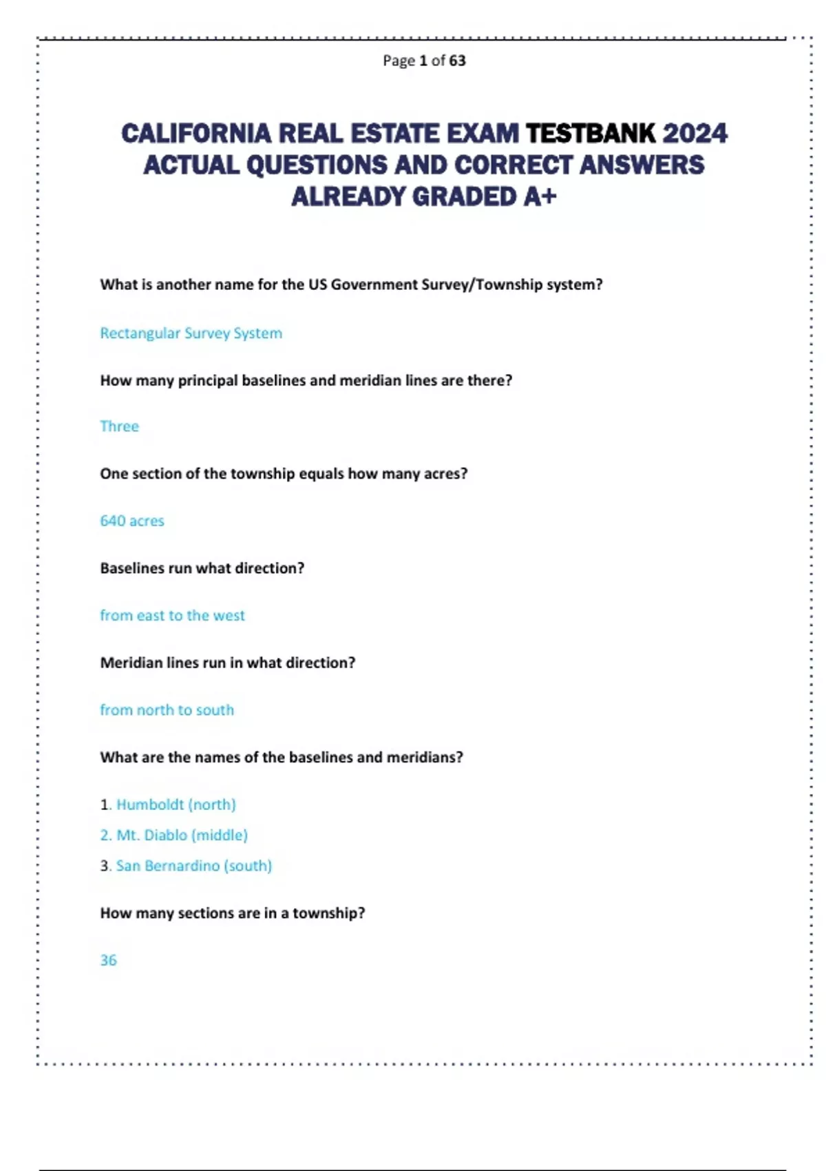 CALIFORNIA REAL ESTATE EXAM TESTBANK 2024 ACTUAL QUESTIONS AND CORRECT ANSWERS ALREADY GRADED A+