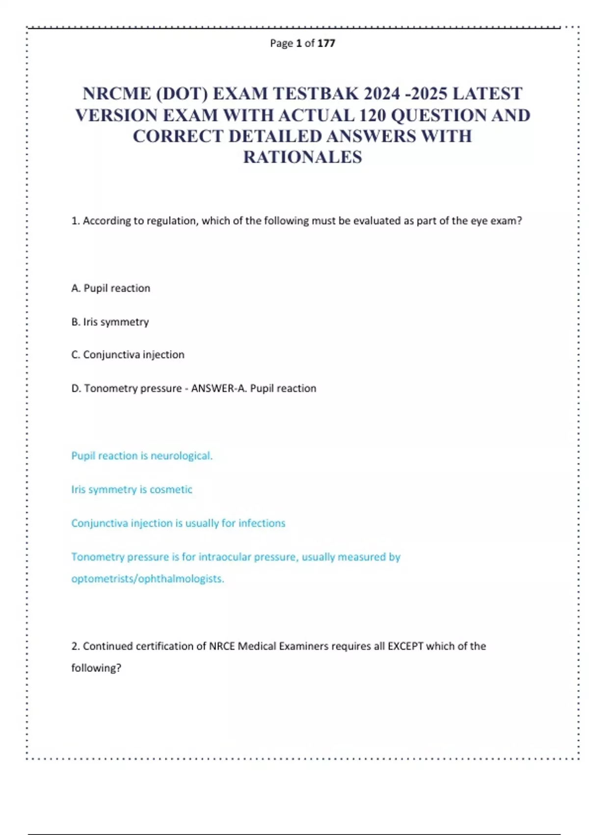 NRCME (DOT) EXAM TESTBANK LATEST VERSION EXAM WITH ACTUAL 120 QUESTION AND CORRECT DETAILED ANSWERS WITH RATIONALES