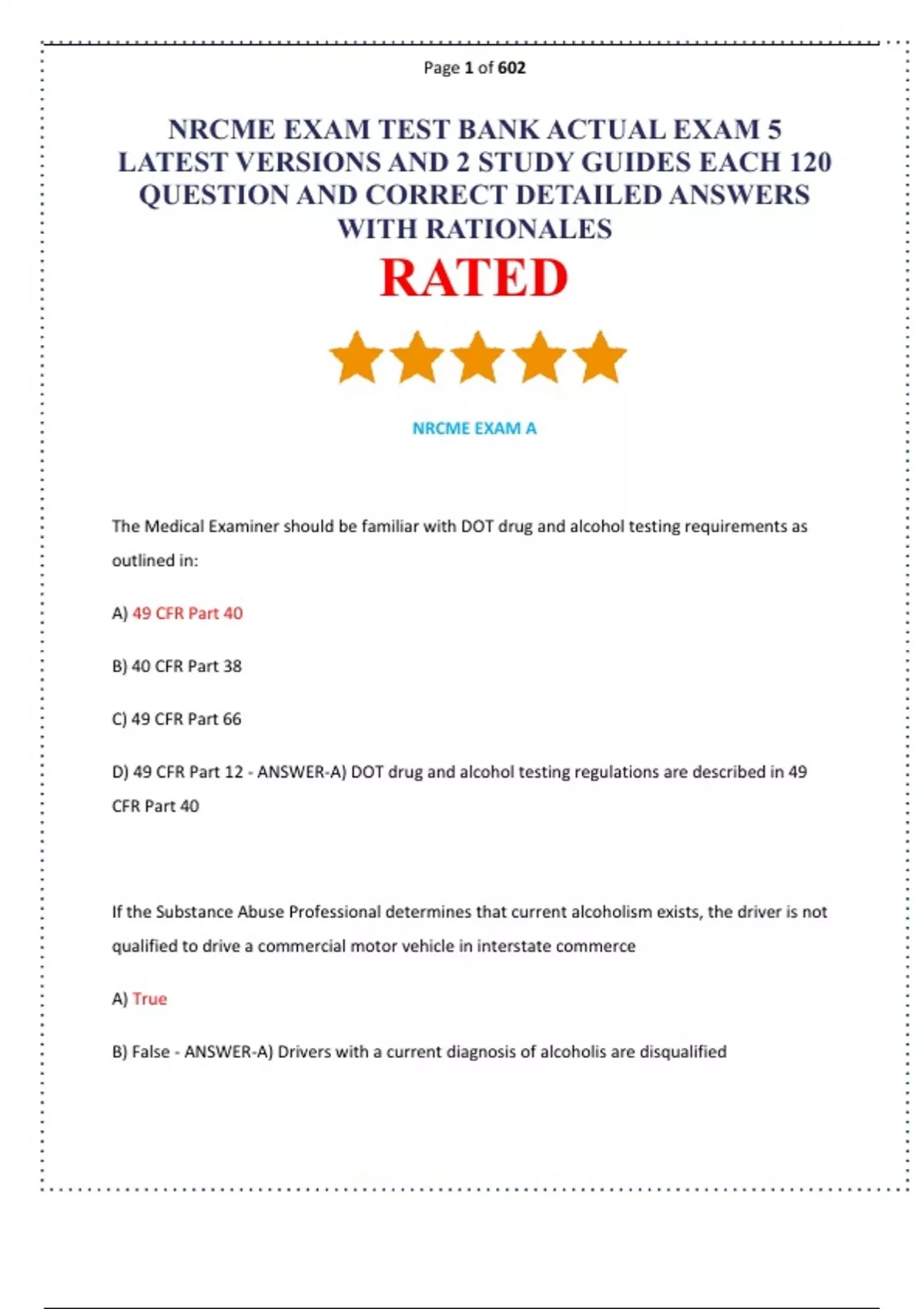 NRCME EXAM TEST BANK ACTUAL EXAM 5 LATEST VERSIONS AND 2 STUDY GUIDES EACH 120 QUESTION AND CORRECT DETAILED ANSWERS WITH RATIONALES