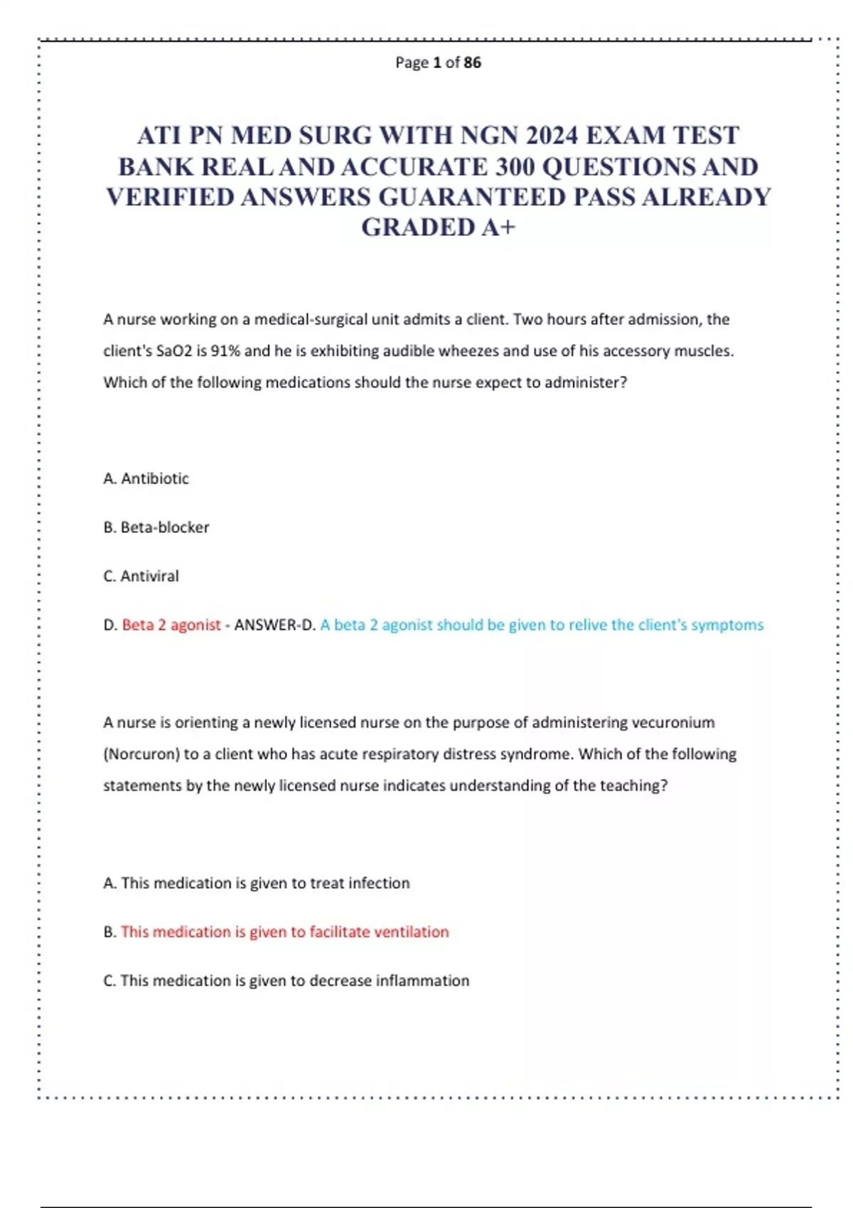ATI PN MED SURG WITH NGN 2024 EXAM TEST BANK REAL AND ACCURATE 300 QUESTIONS AND VERIFIED ANSWERS GUARANTEED PASS ALREADY GRADED A+