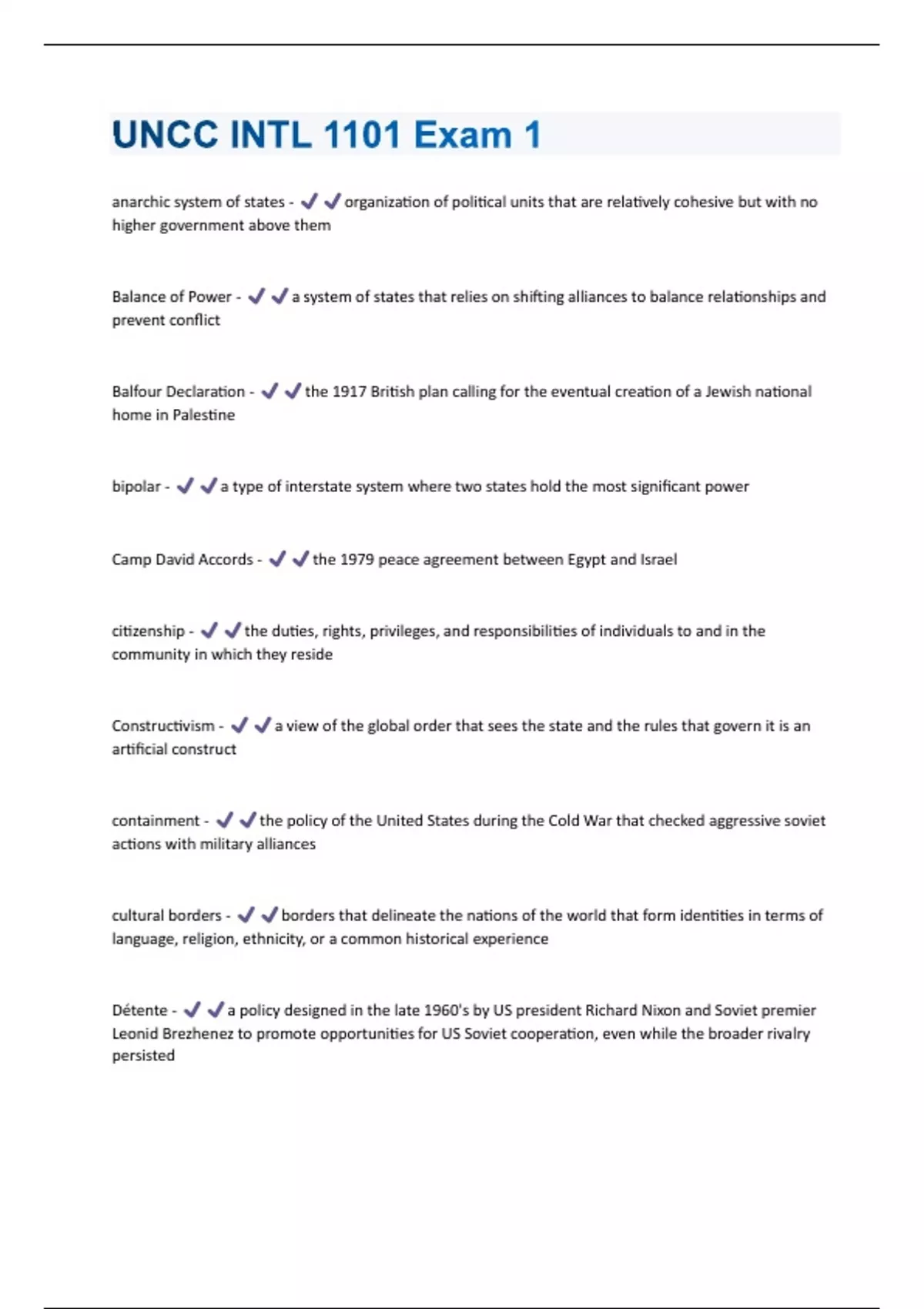 UNCC INTL 1101 Exam 1 Questions And Answers With Verified Solutions