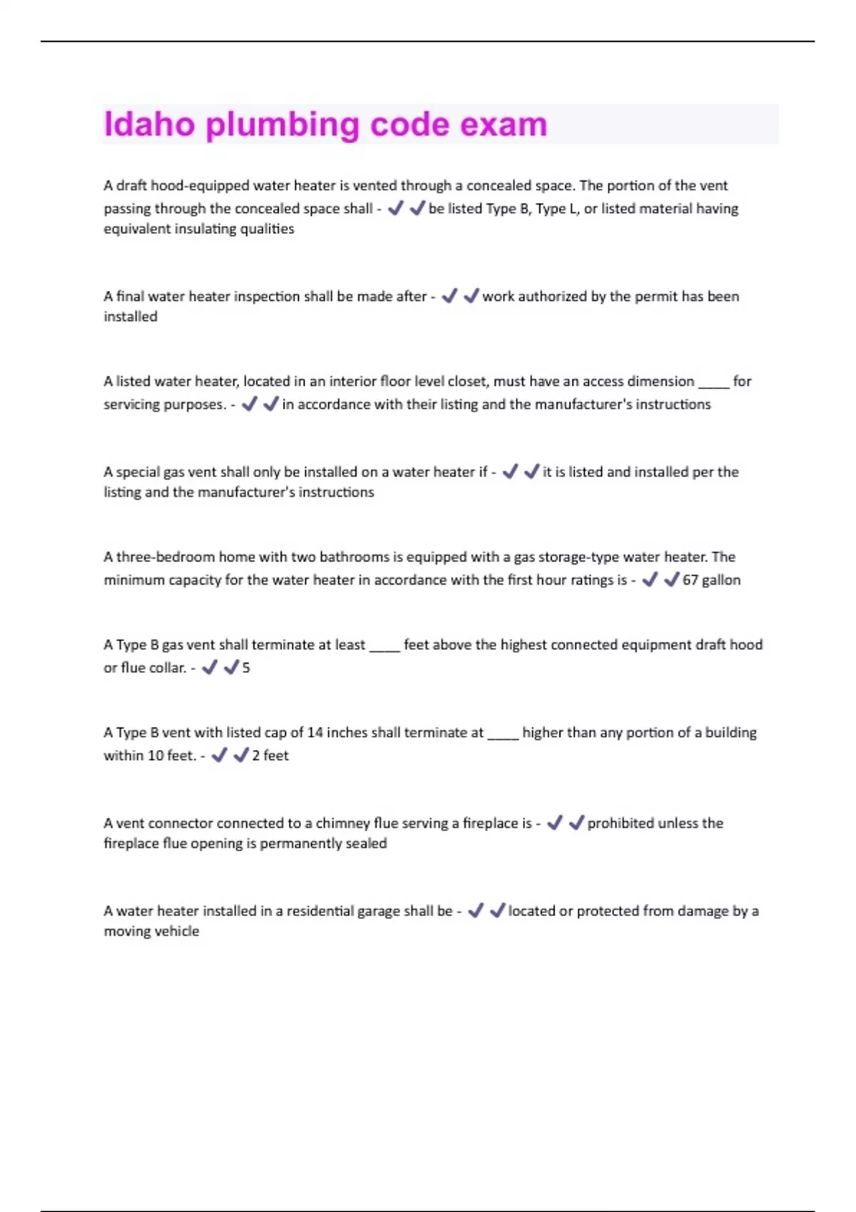 Idaho plumbing code exam questions with 100 % correct answers | verified
