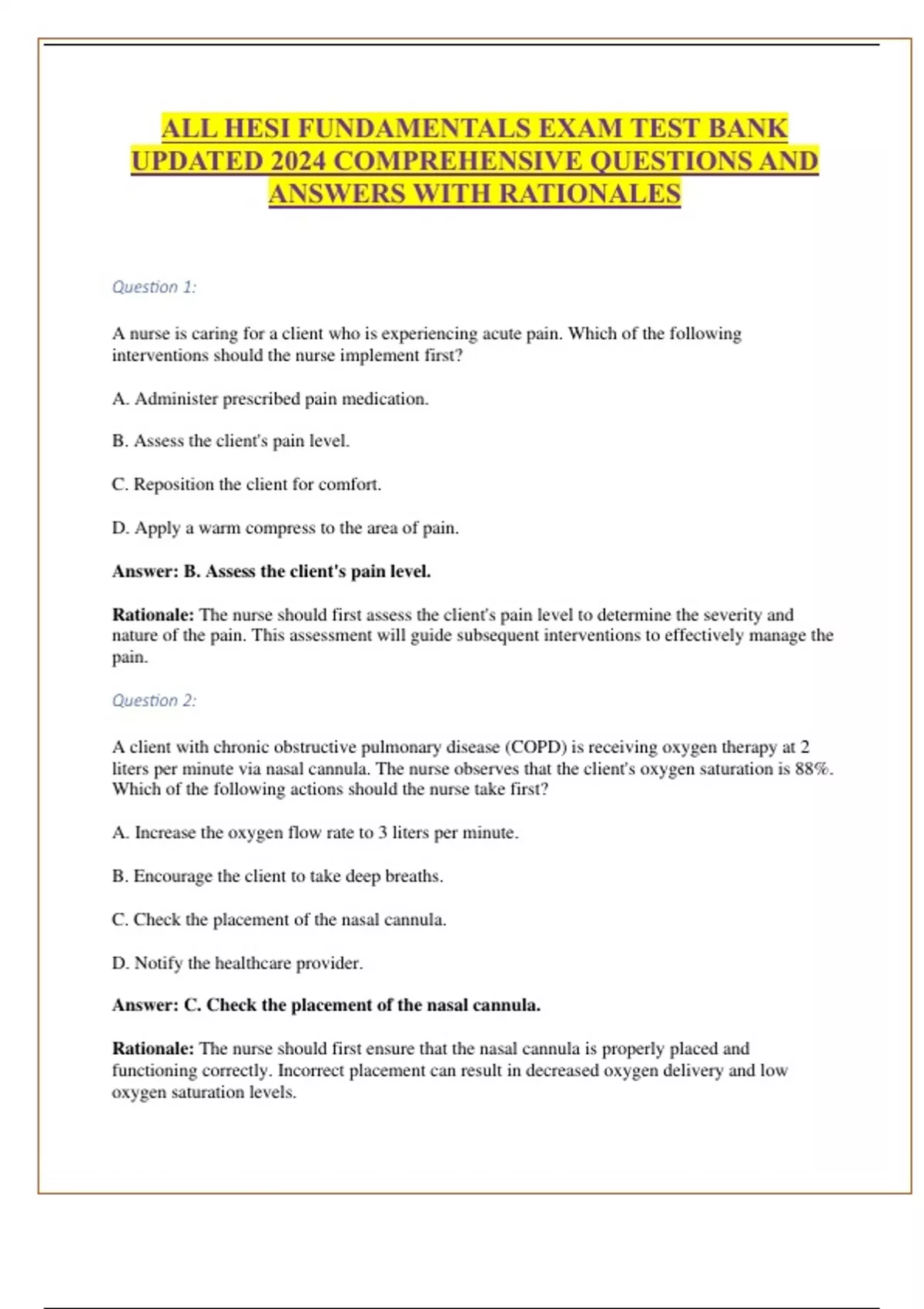 Rationale: The nurse should first assess the client's pain level to determine the severity and