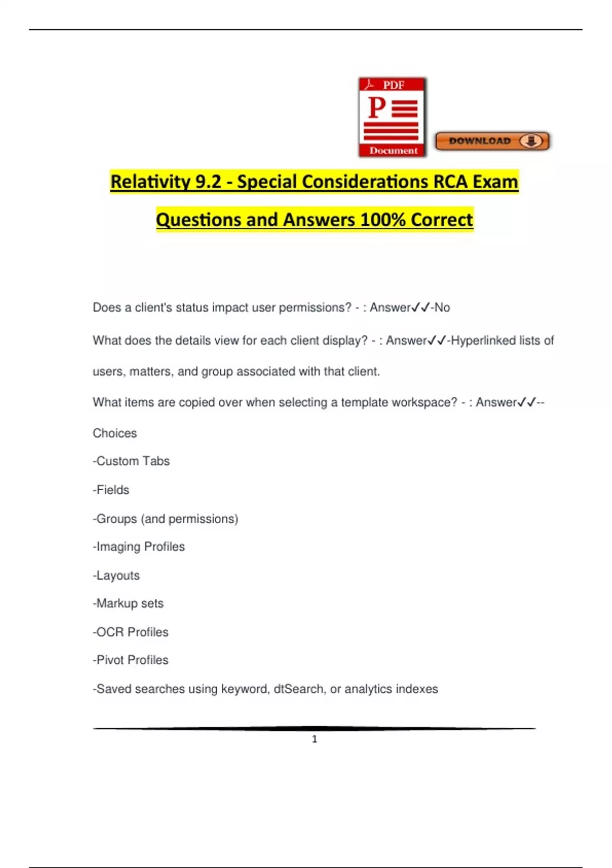 Relativity 9.2 - Special Considerations RCA Exam Questions and Answers 100% Correct