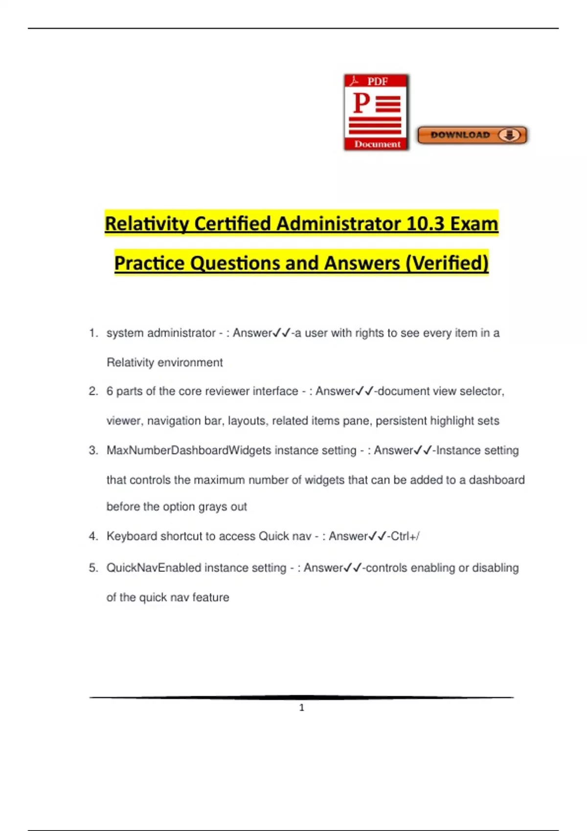 Relativity Certified Administrator 10.3 Exam Practice Questions and Answers (Verified)