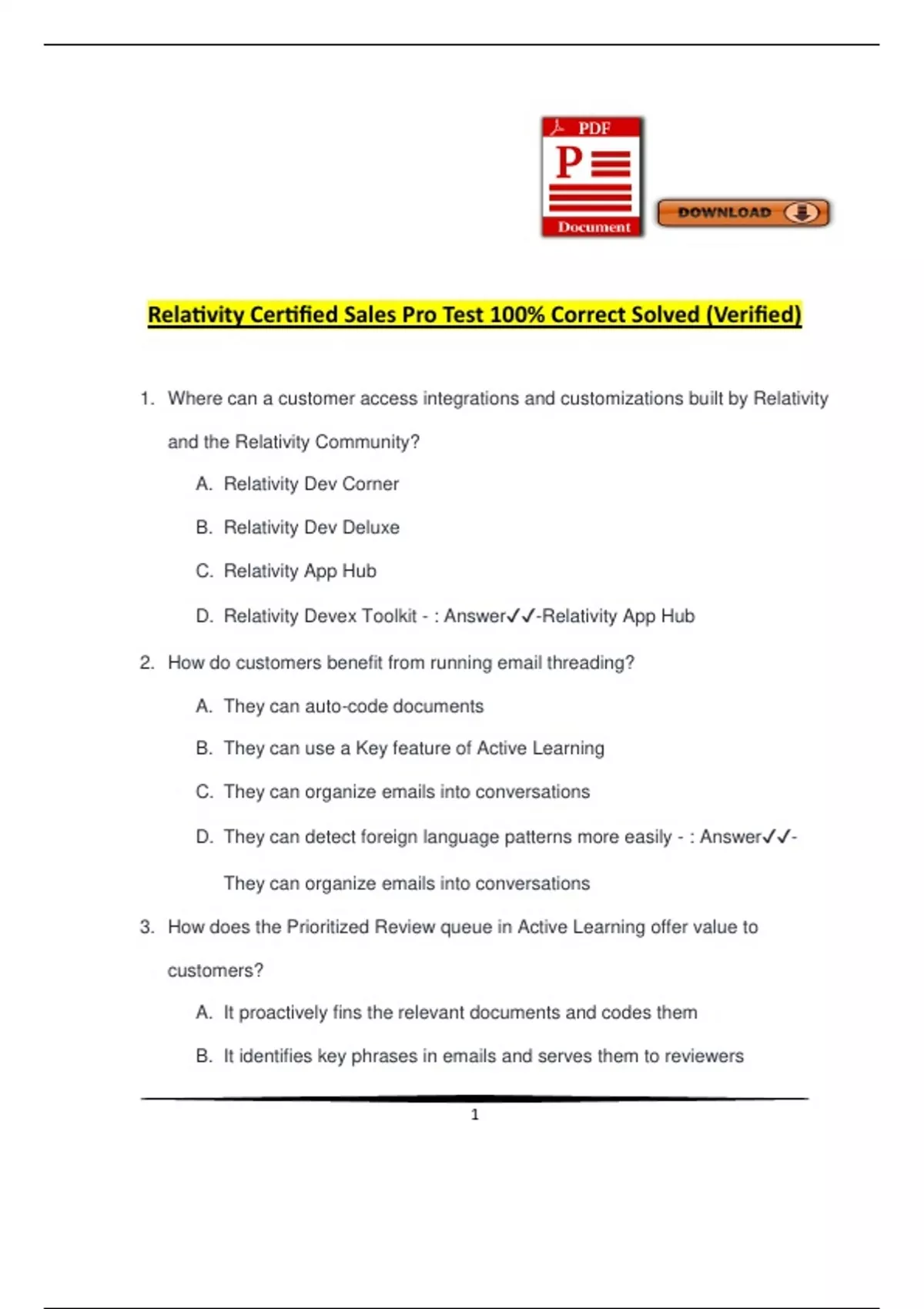Relativity Certified Sales Pro Test 100% Correct Solved (Verified)