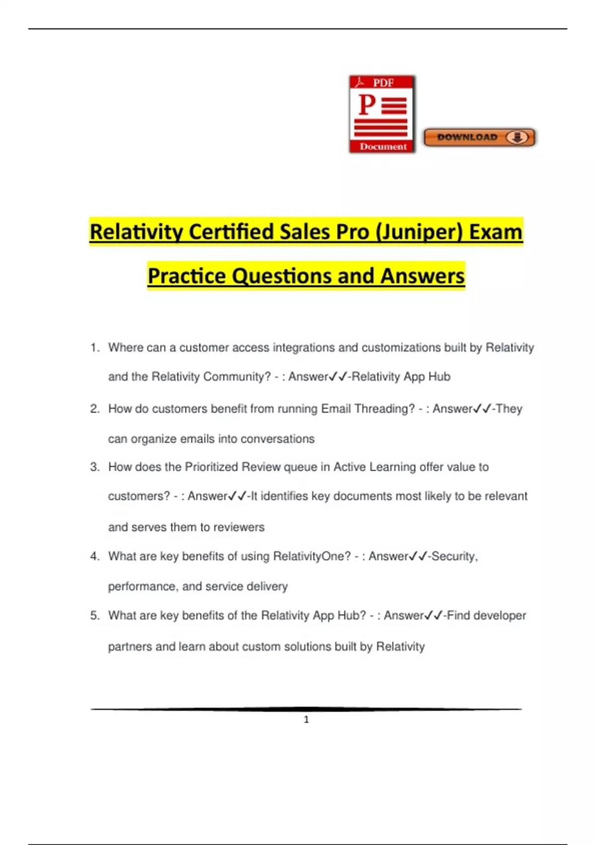Relativity Certified Sales Pro (Juniper) Exam Practice Questions and Answers