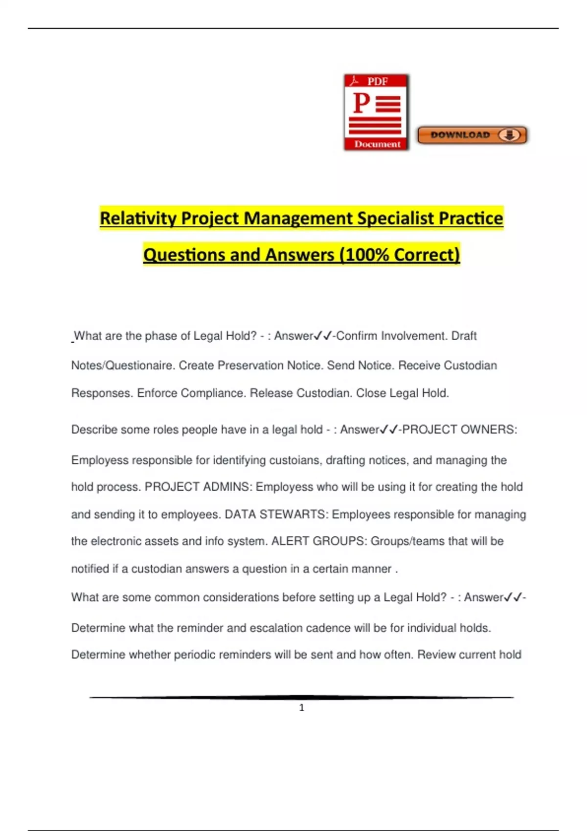 Relativity Project Management Specialist Practice Questions and Answers (100% Correct)