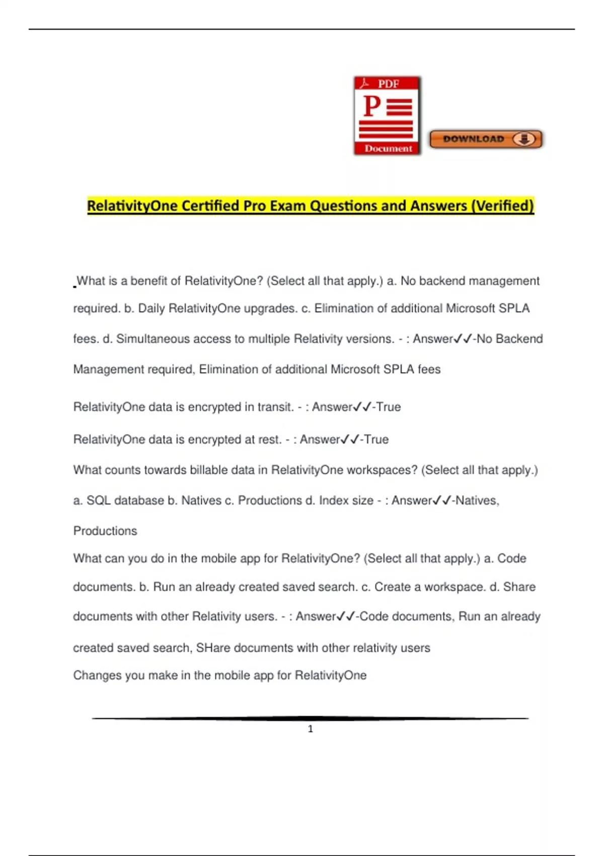 RelativityOne Certified Pro Exam Questions and Answers (Verified)