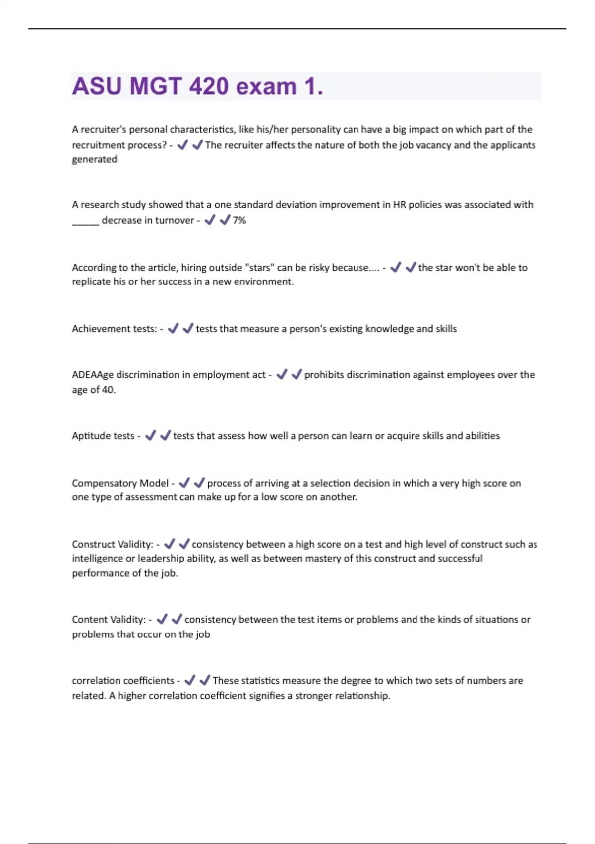 ASU MGT 420 exam 1 (Questions + Answers) Solved