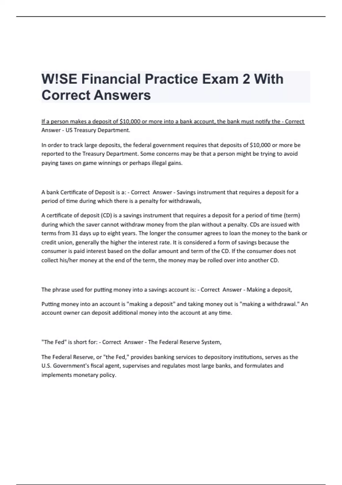 W!SE Financial Practice Exam 2 With