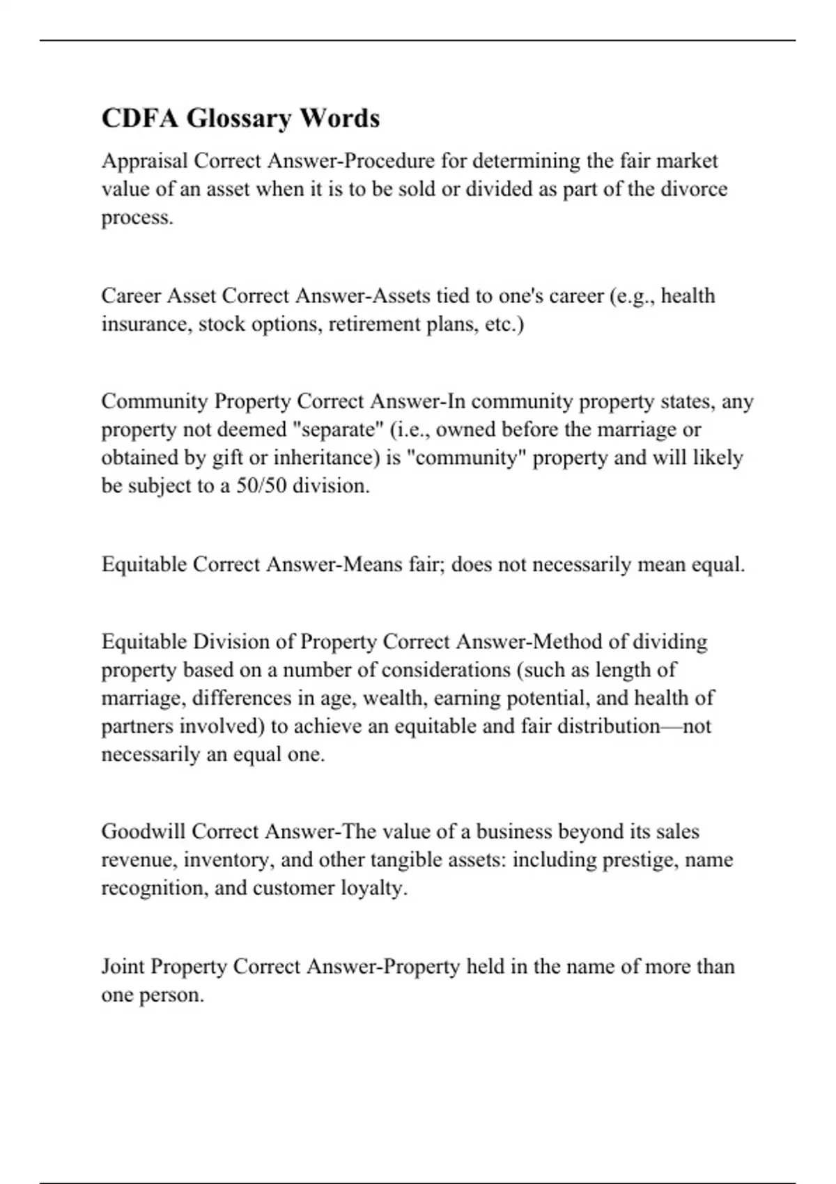 Exam of 25 pages for the course CDFA at CDFA (CDFA Glossary Words)