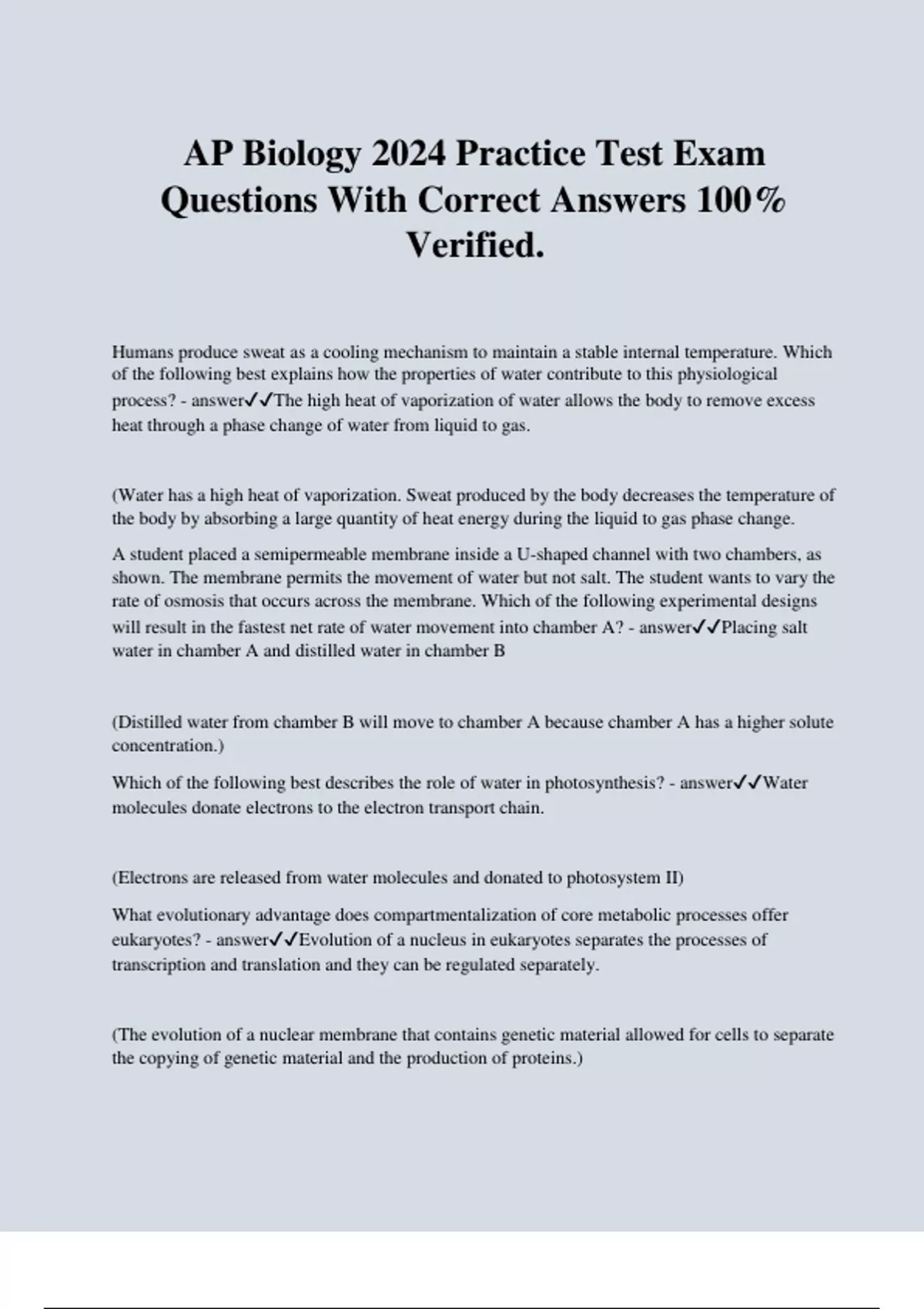 AP Biology 2024 Practice Test Exam Questions With Correct Answers 100% Verified.