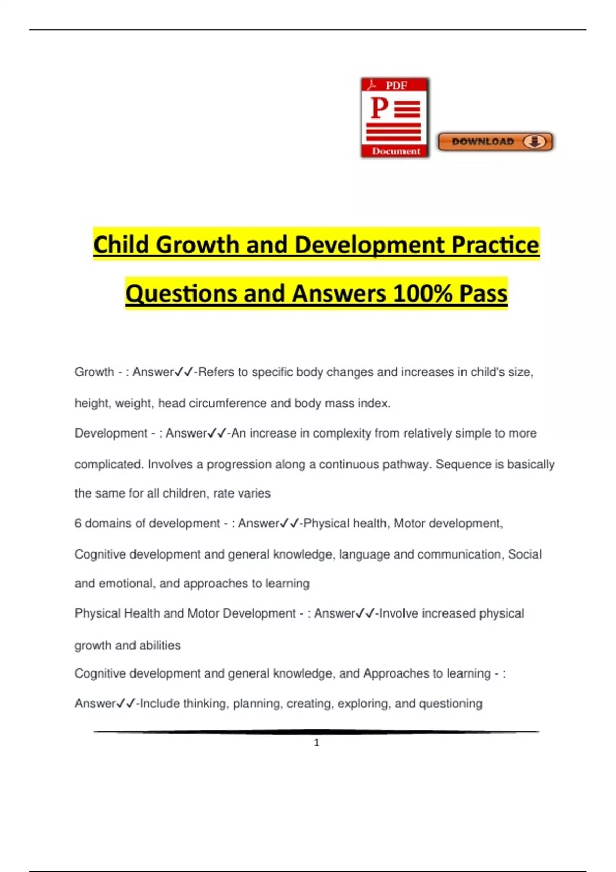 Child Growth and Development Practice Questions and Answers 100% Pass