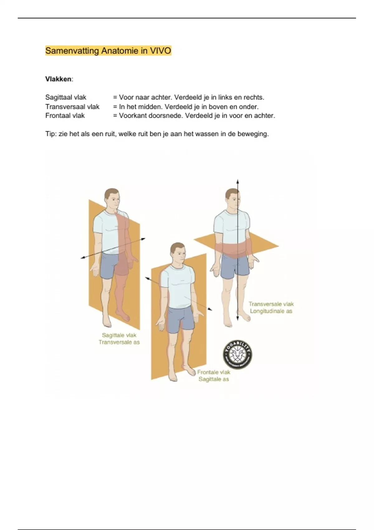 Sagittaal vlak = Voor naar achter. Verdeeld je in links en rechts.