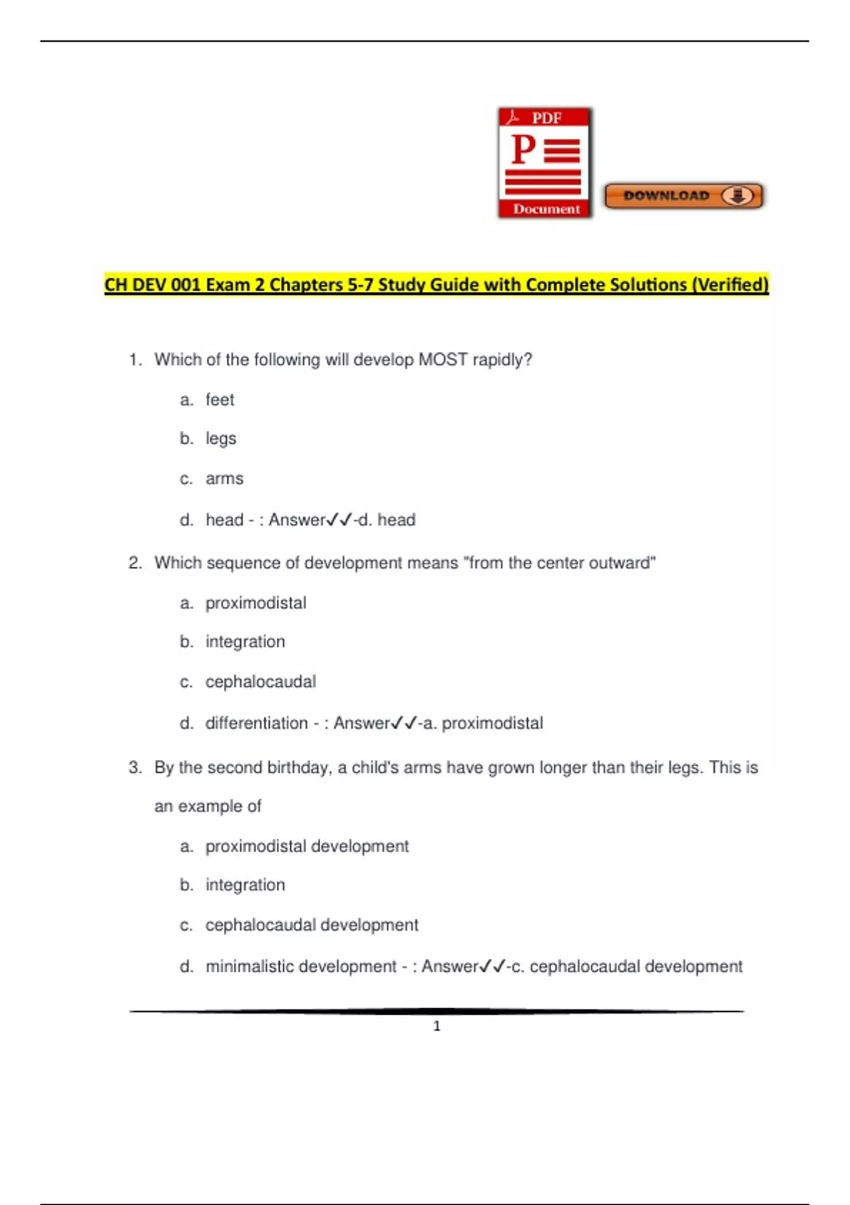 CH DEV 001 Exam 2 Chapters 5-7 Study Guide with Complete Solutions (Verified)