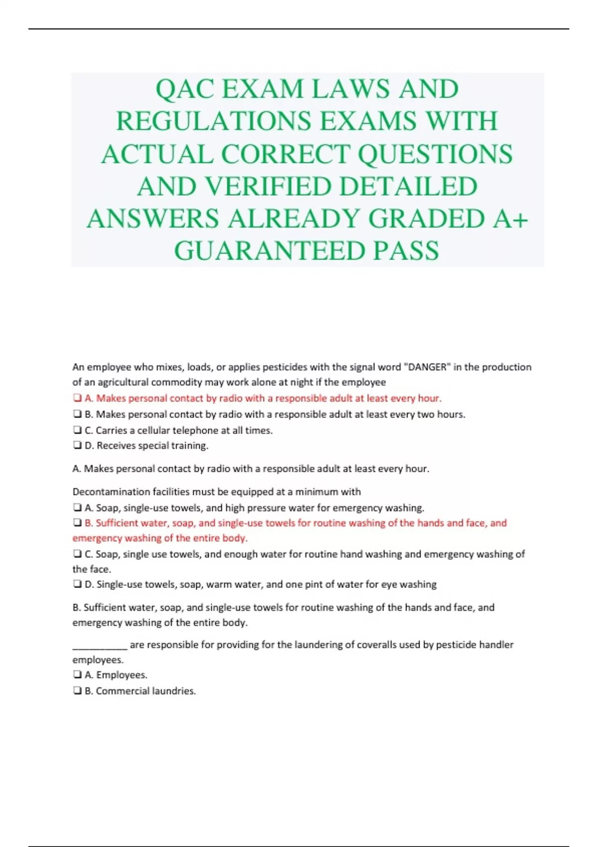 QAC EXAM LAWS AND REGULATIONS EXAMS WITH ACTUAL CORRECT QUESTIONS AND VERIFIED DETAILED ANSWERS ALREADY GRADED A+ GUARANTEED PASS