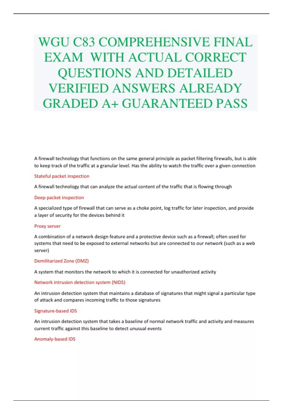 WGU C83 COMPREHENSIVE FINAL EXAM WITH ACTUAL CORRECT QUESTIONS AND DETAILED VERIFIED ANSWERS ALREADY GRADED A+ GUARANTEED PASS