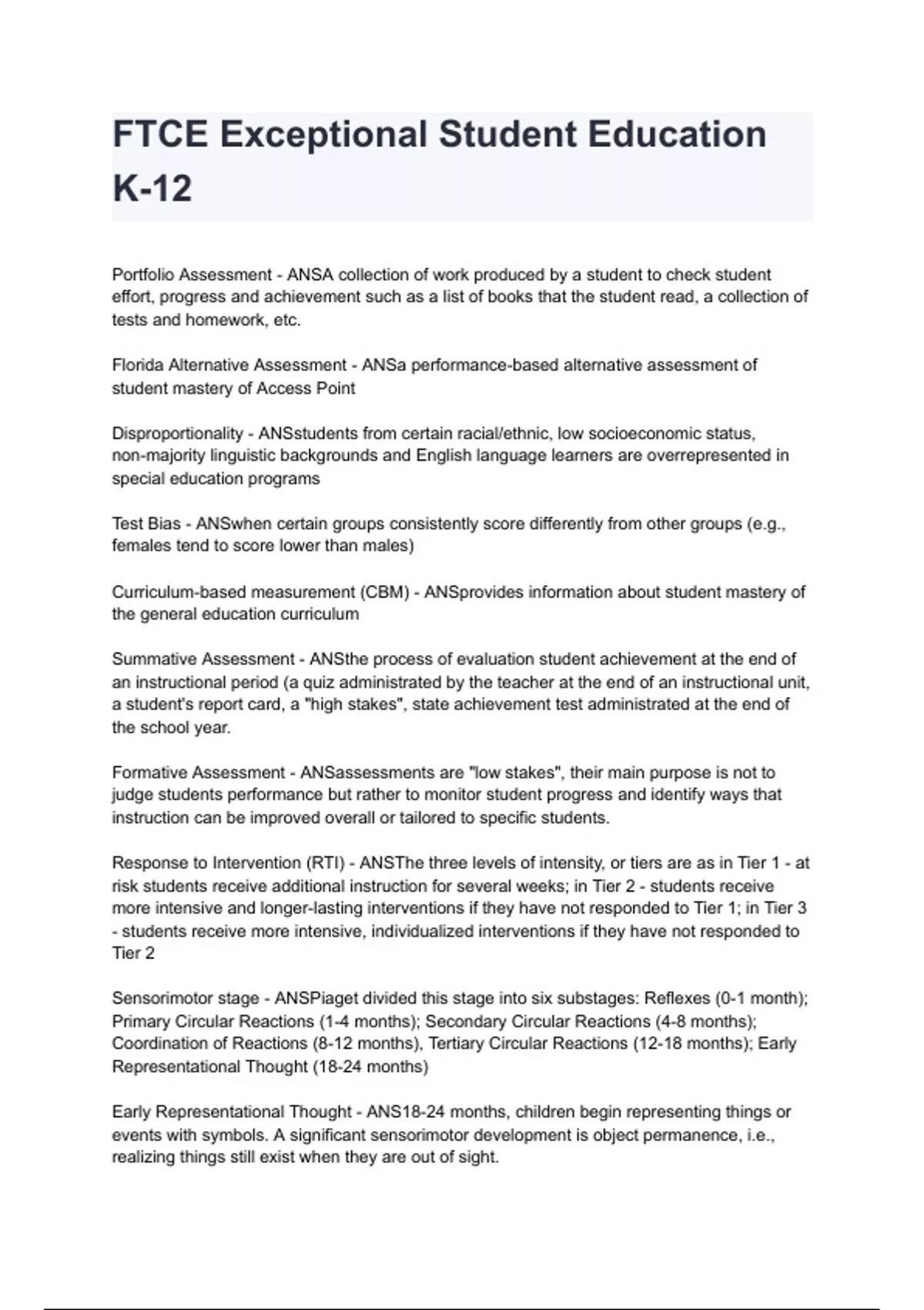 FTCE Exceptional Student Education K-12 questions and answers rated A+ by experts 2024/2025