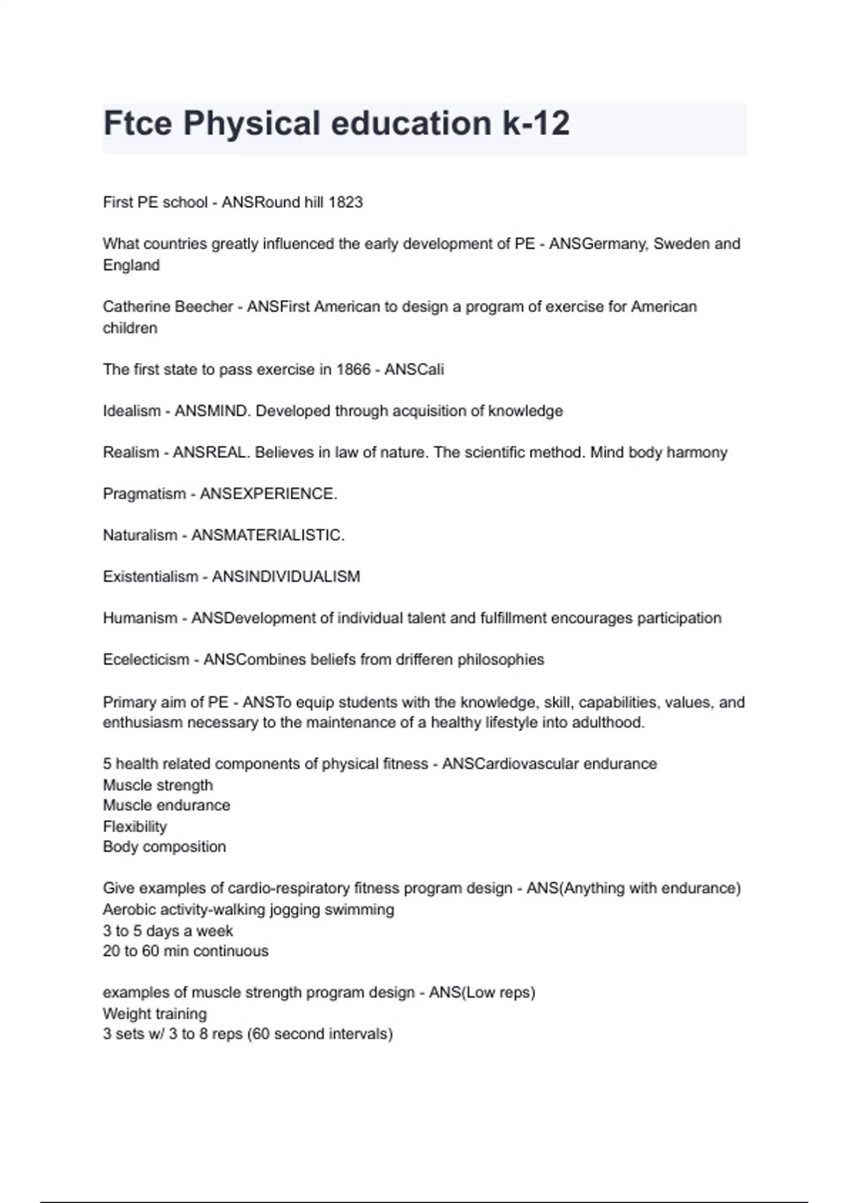 Ftce Physical education k-12 questions and answers rated A+ by experts 2024/2025
