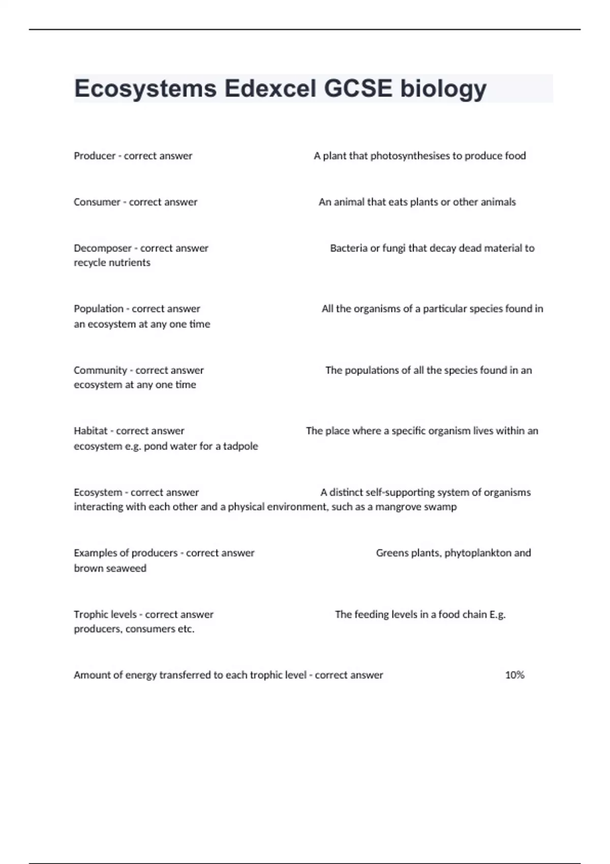 Ecosystems Edexcel GCSE biology Newest Latest Study Guide Questions Fully Solved.