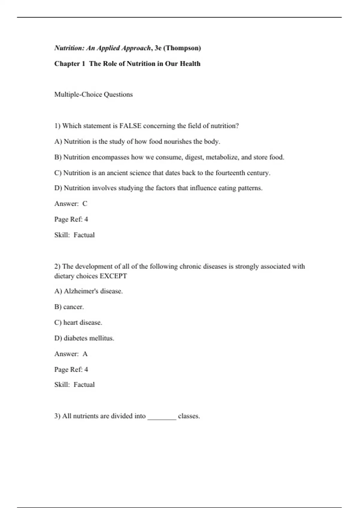 Question Bank in line with Nutrition An Applied Approach,Thompson,3e