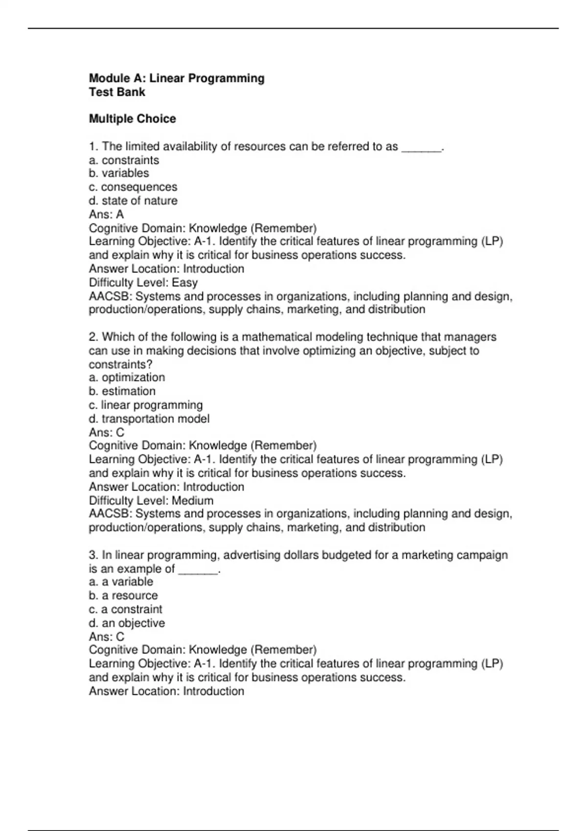 Answer Location: Features of a Linear Programming (LP) Problem