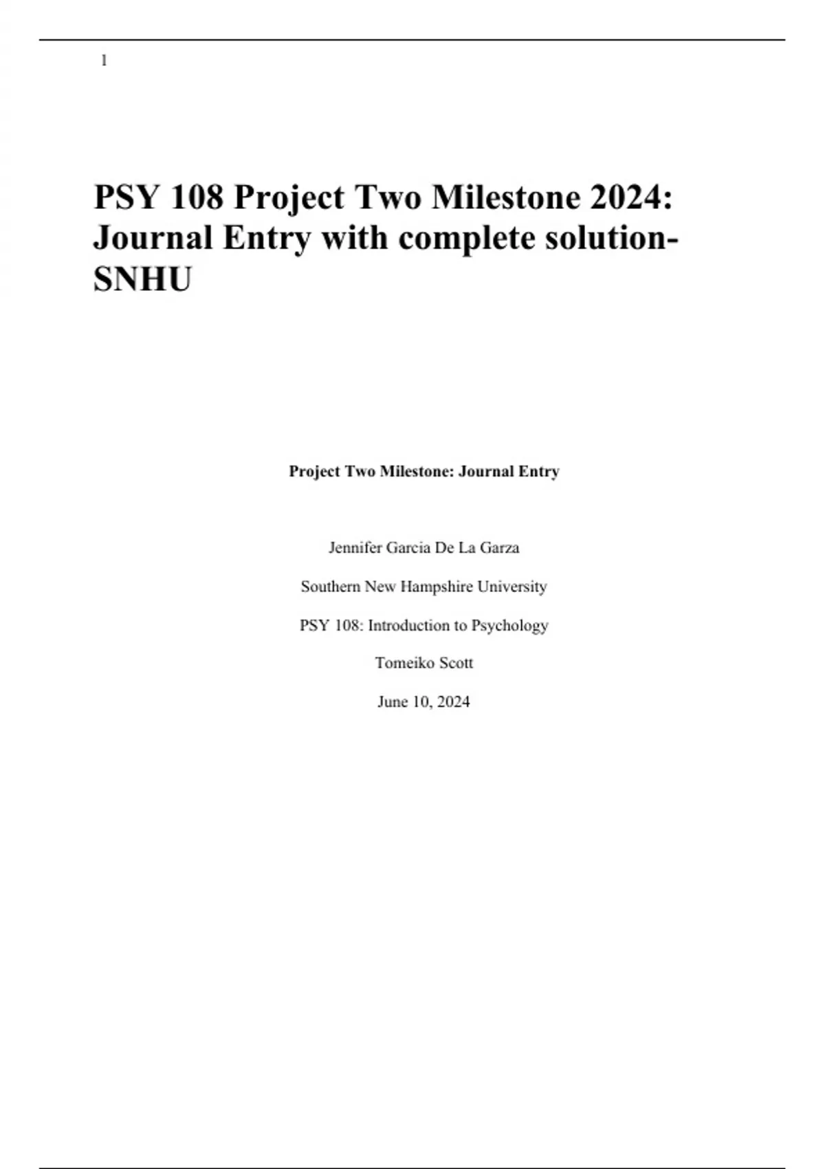 PSY 108 Project Two Milestone 2024: Journal Entry with complete solution-SNHU