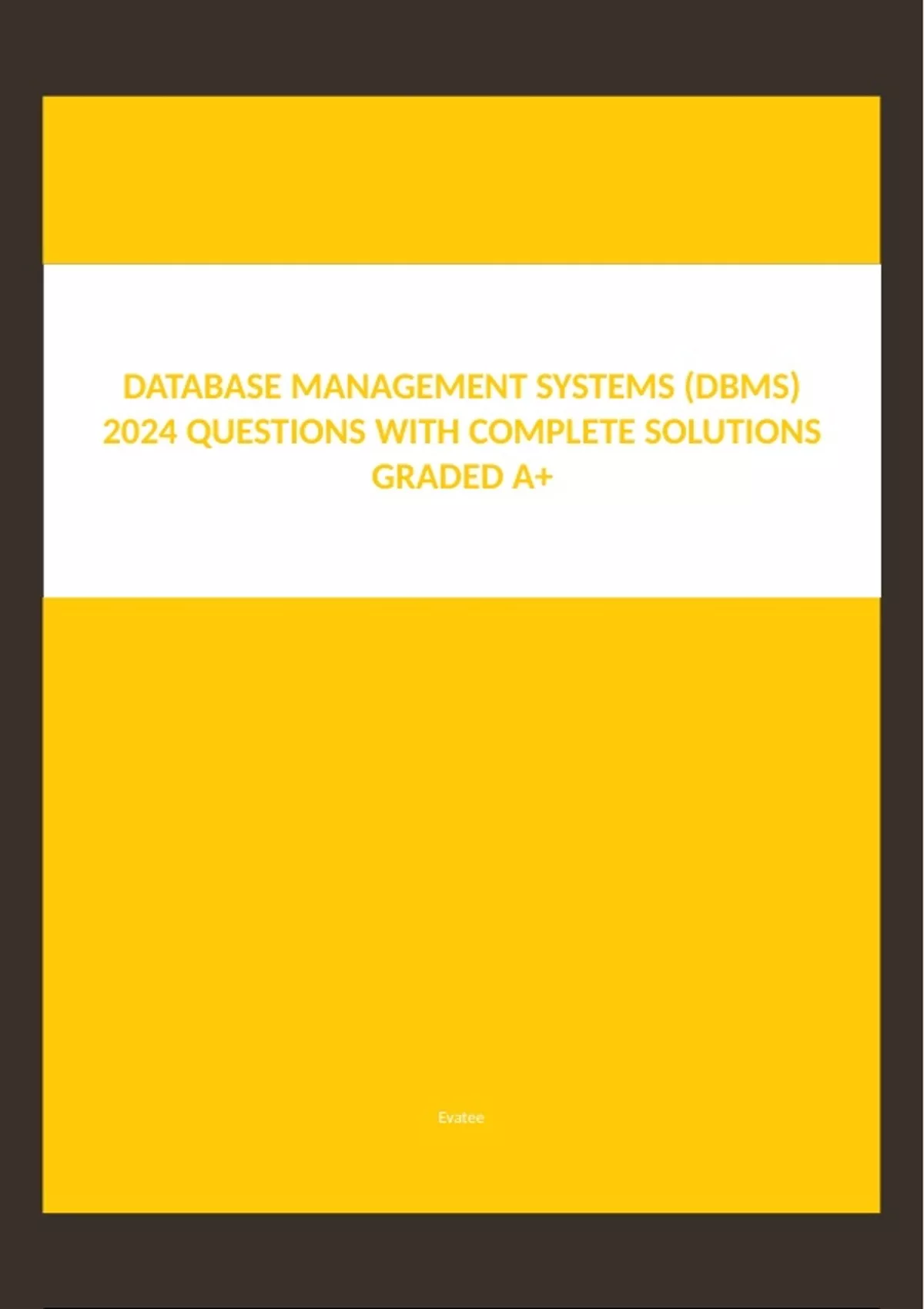 DATABASE MANAGEMENT SYSTEMS (DBMS) 2024 QUESTIONS WITH COMPLETE SOLUTIONS GRADED A+