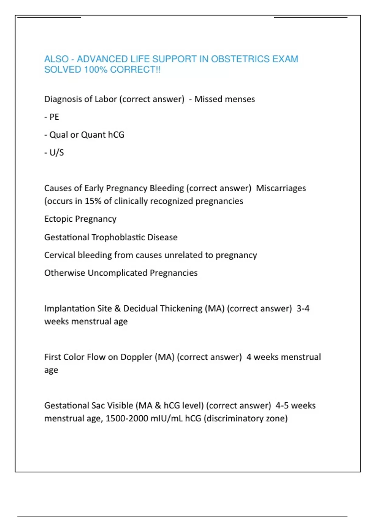 ALSO - ADVANCED LIFE SUPPORT IN OBSTETRICS EXAM SOLVED 100% CORRECT!!