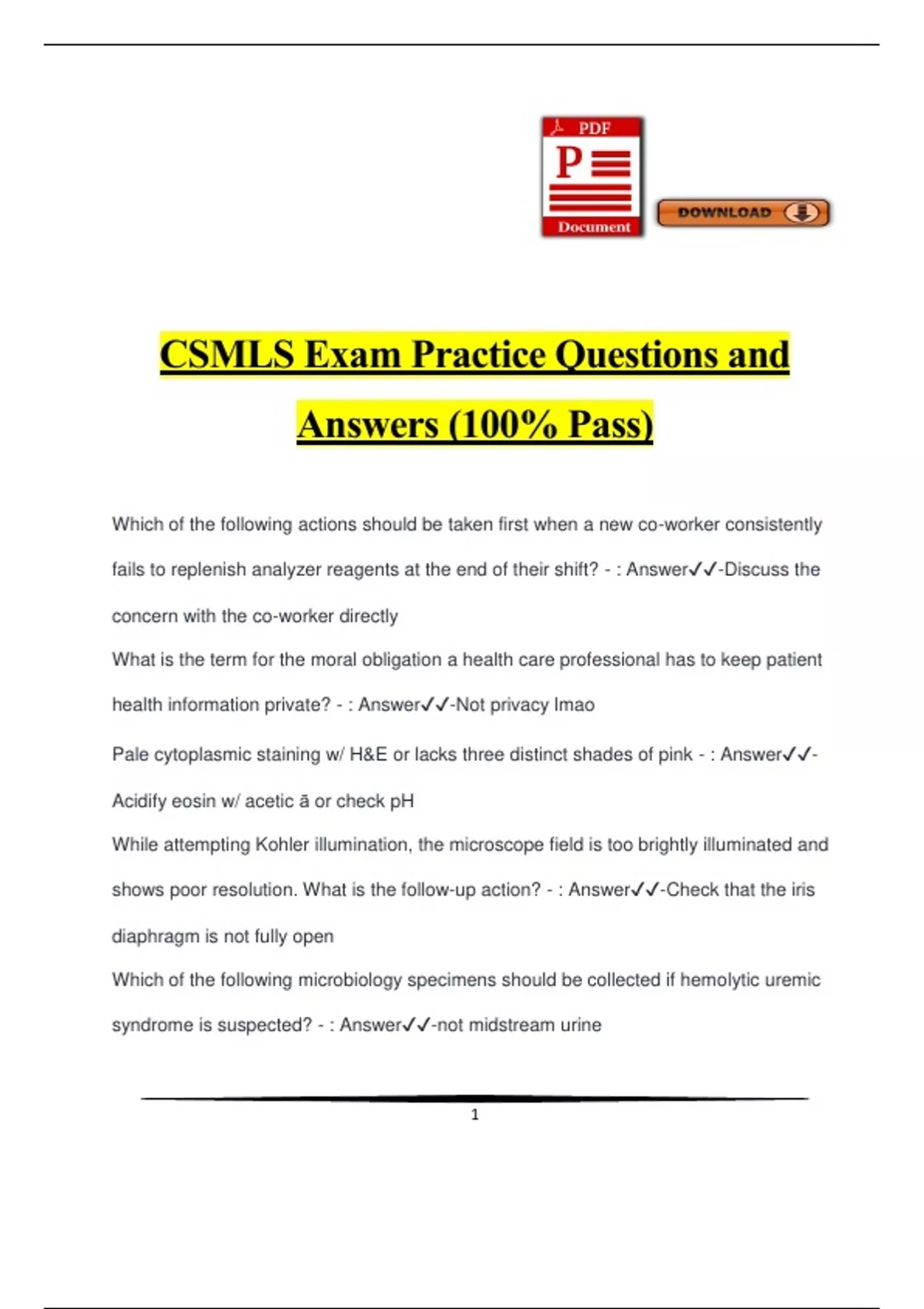 CSMLS Exam Practice Questions and Answers (100% Pass)