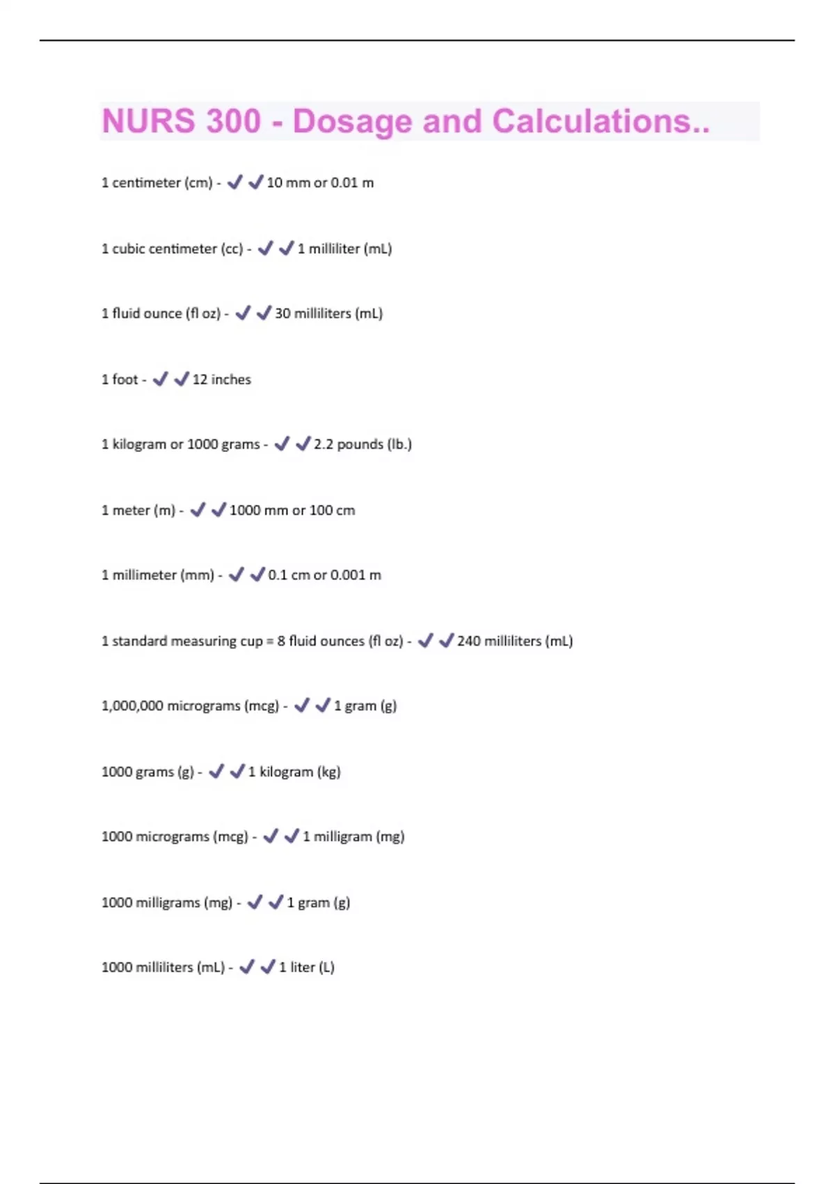- NURS 300 - Dosage and Calculations..