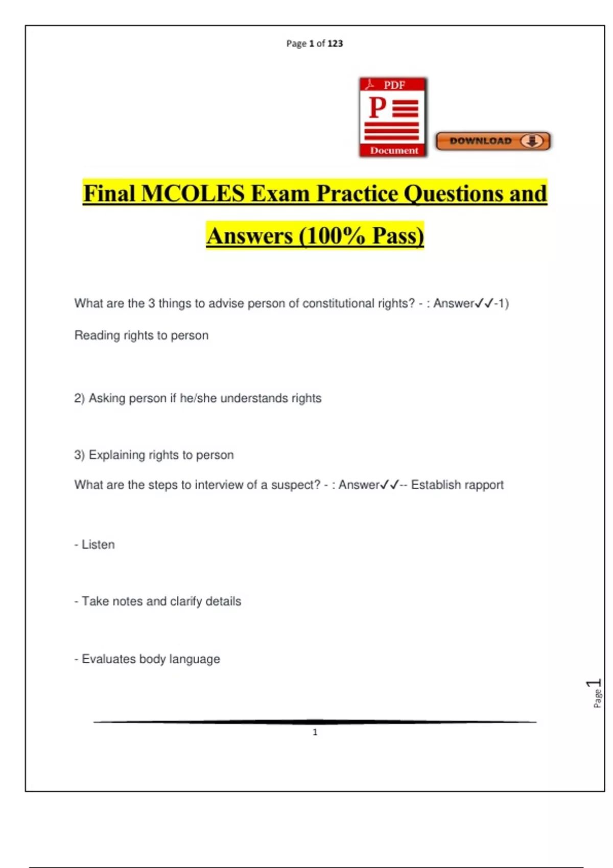 Final MCOLES Exam Practice Questions and Answers (100% Pass)