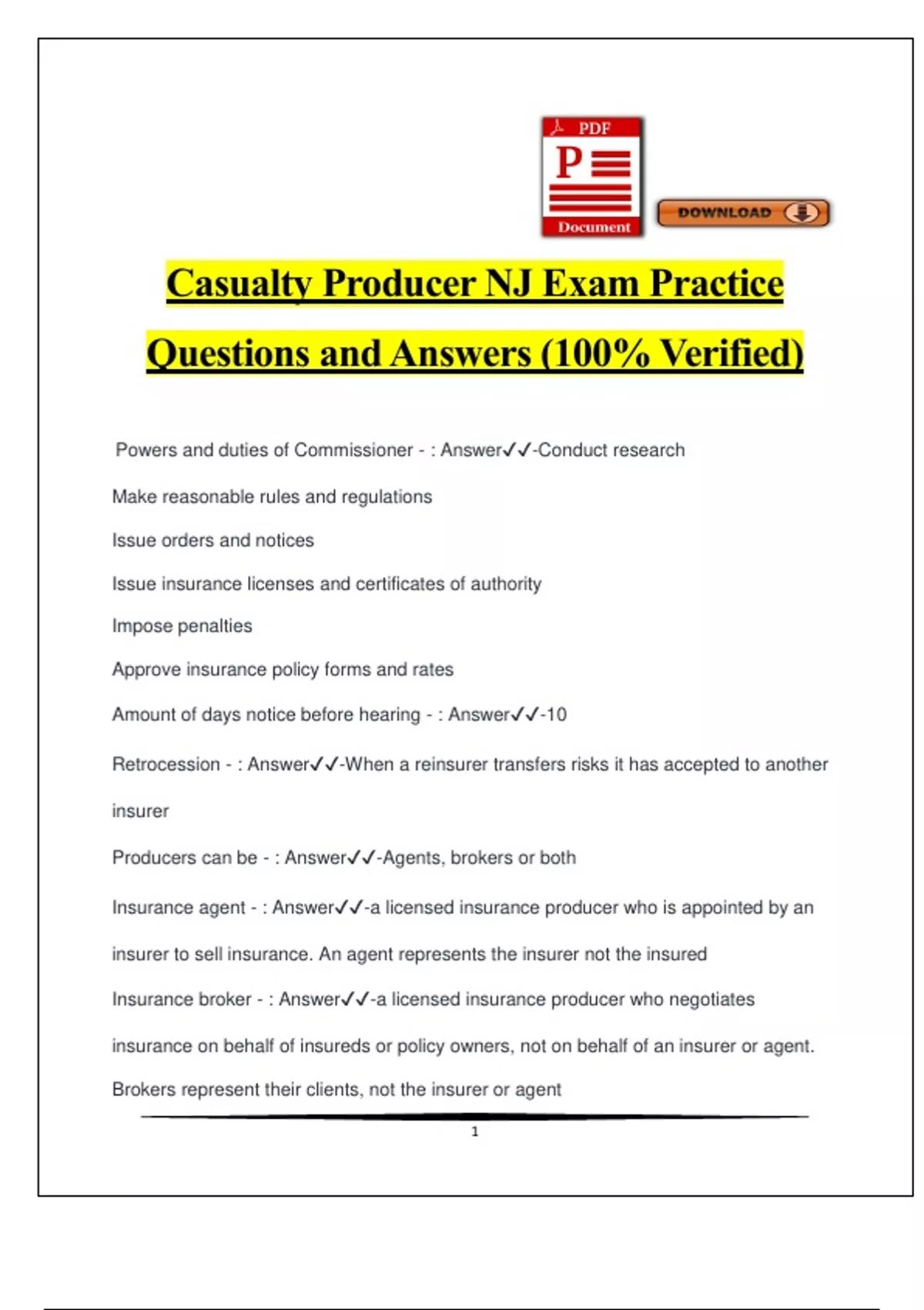 Casualty Producer NJ Exam Practice Questions and Answers (100% Verified)
