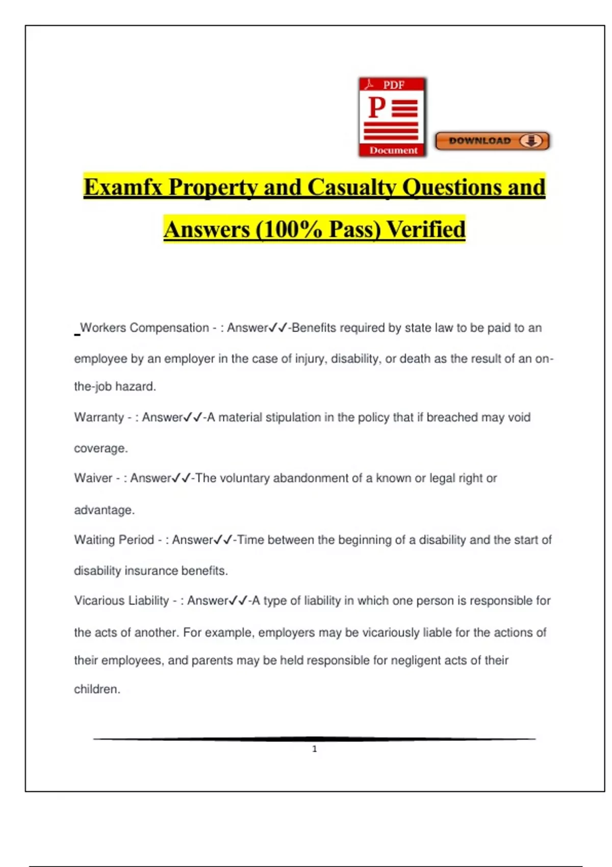 Examfx Property and Casualty Questions and Answers (100% Pass) Verified
