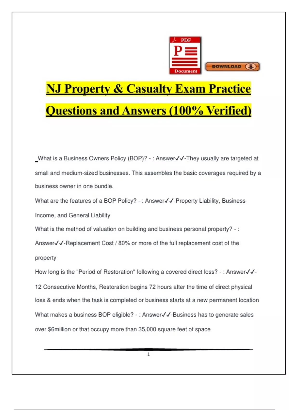 NJ Property & Casualty Exam Practice Questions and Answers (100% Verified)