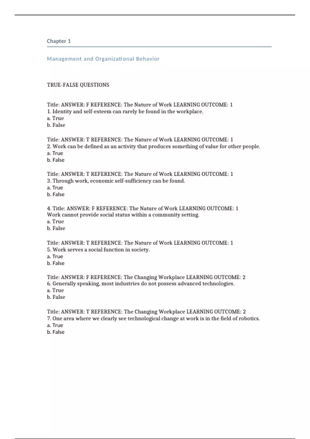 Title: ANSWER: T REFERENCE: The Nature of Work LEARNING OUTCOME: 1