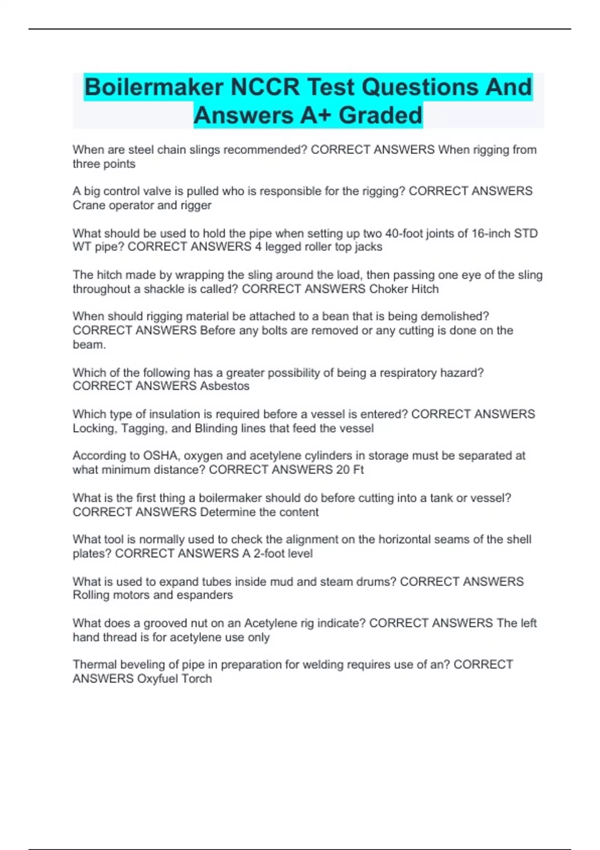 Boilermaker NCCR Test Questions And Answers A+ Graded